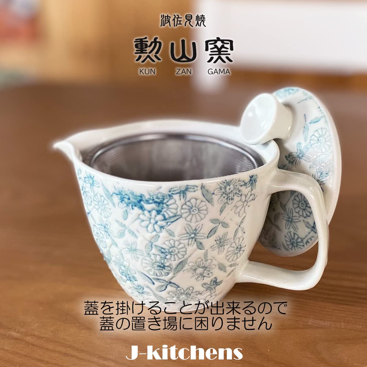 ジェイキッチンズ(J-kitchens)急須 茶こし付き 240ml 1人用 ~ 2人用 波佐見焼 日本製 撥水更紗紋 ポット S ライトブルー