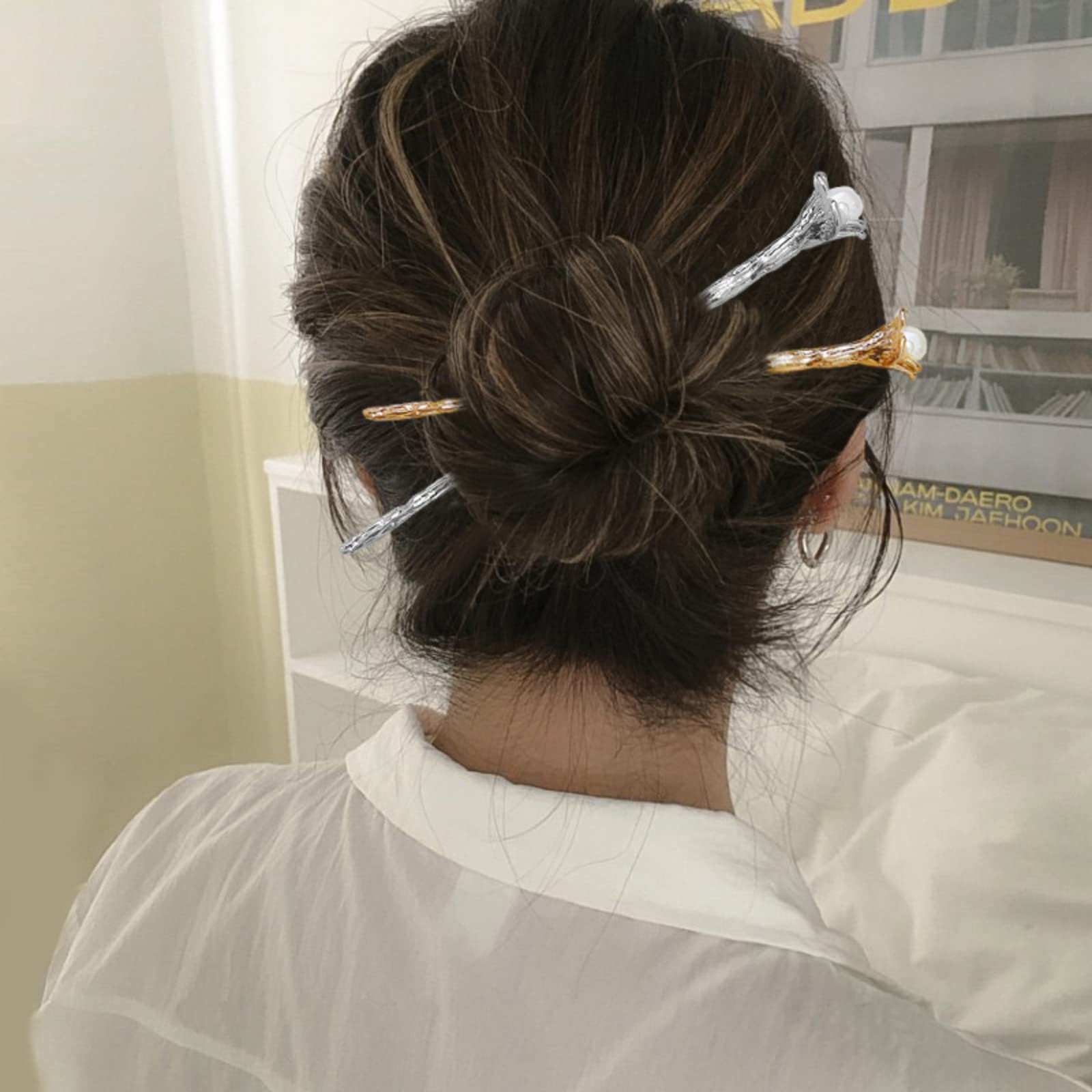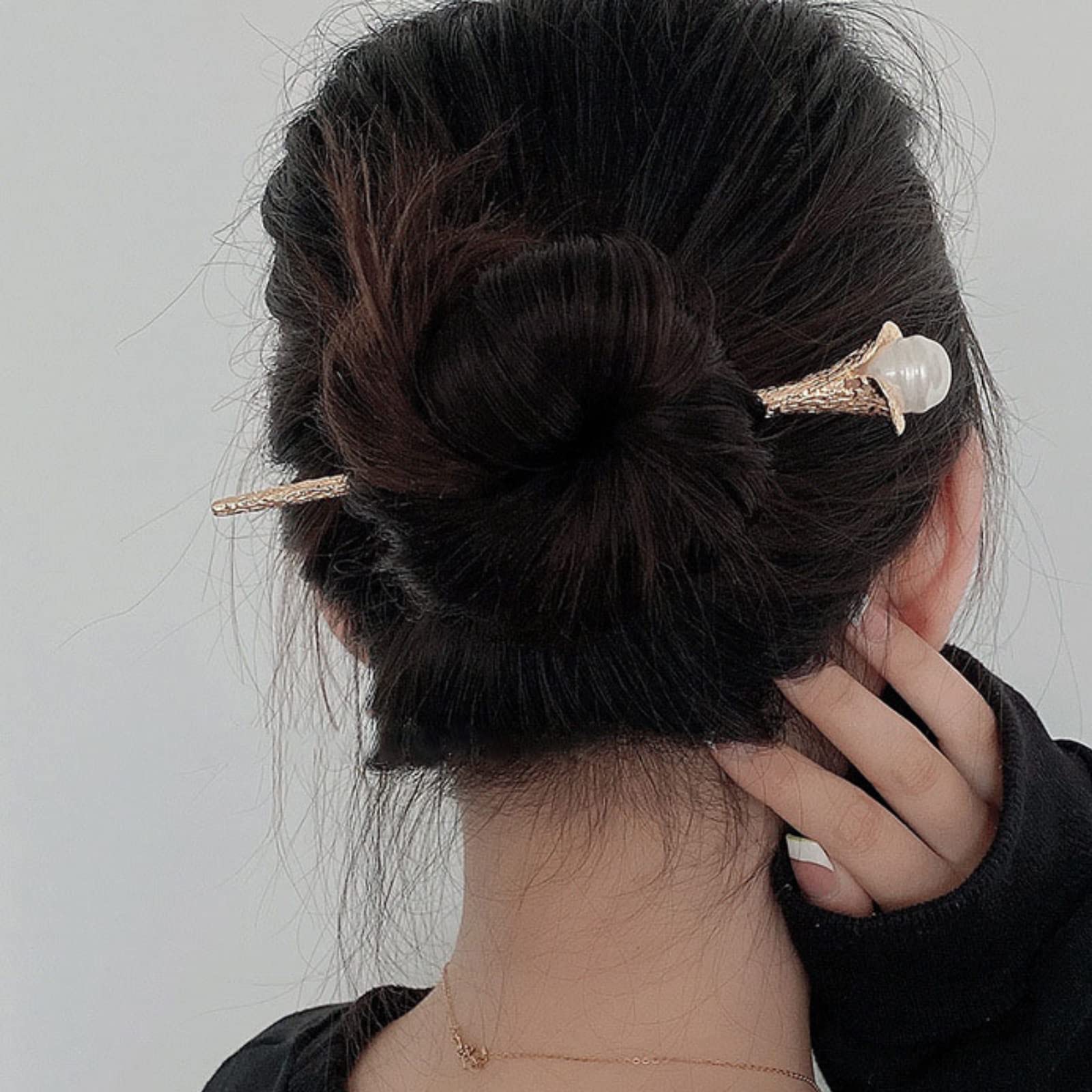 かんざし スティック かんざし ヘアスティック 一本挿し シンプル ヘアアクセサリー 浴衣 ゆかた (パール-Gold)
