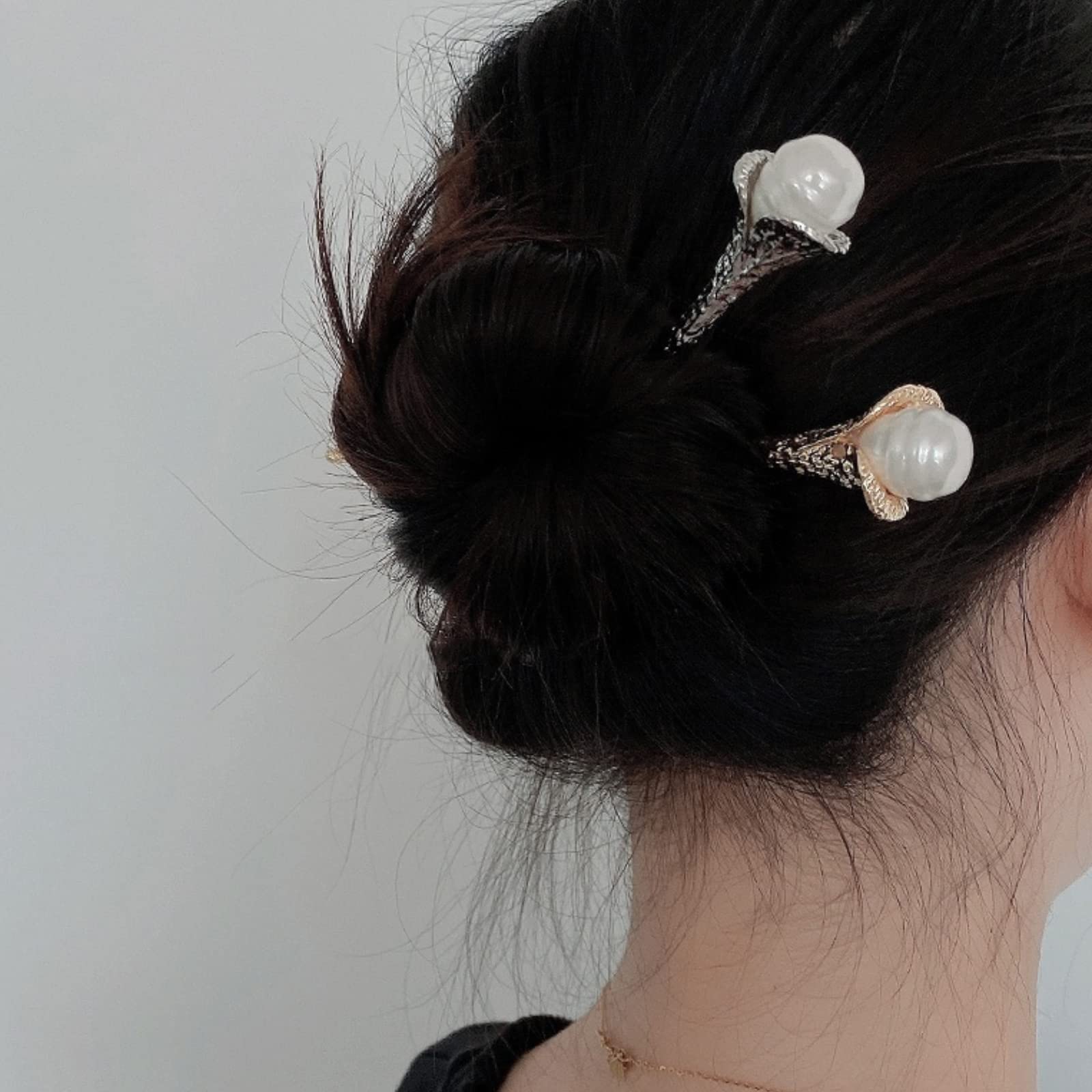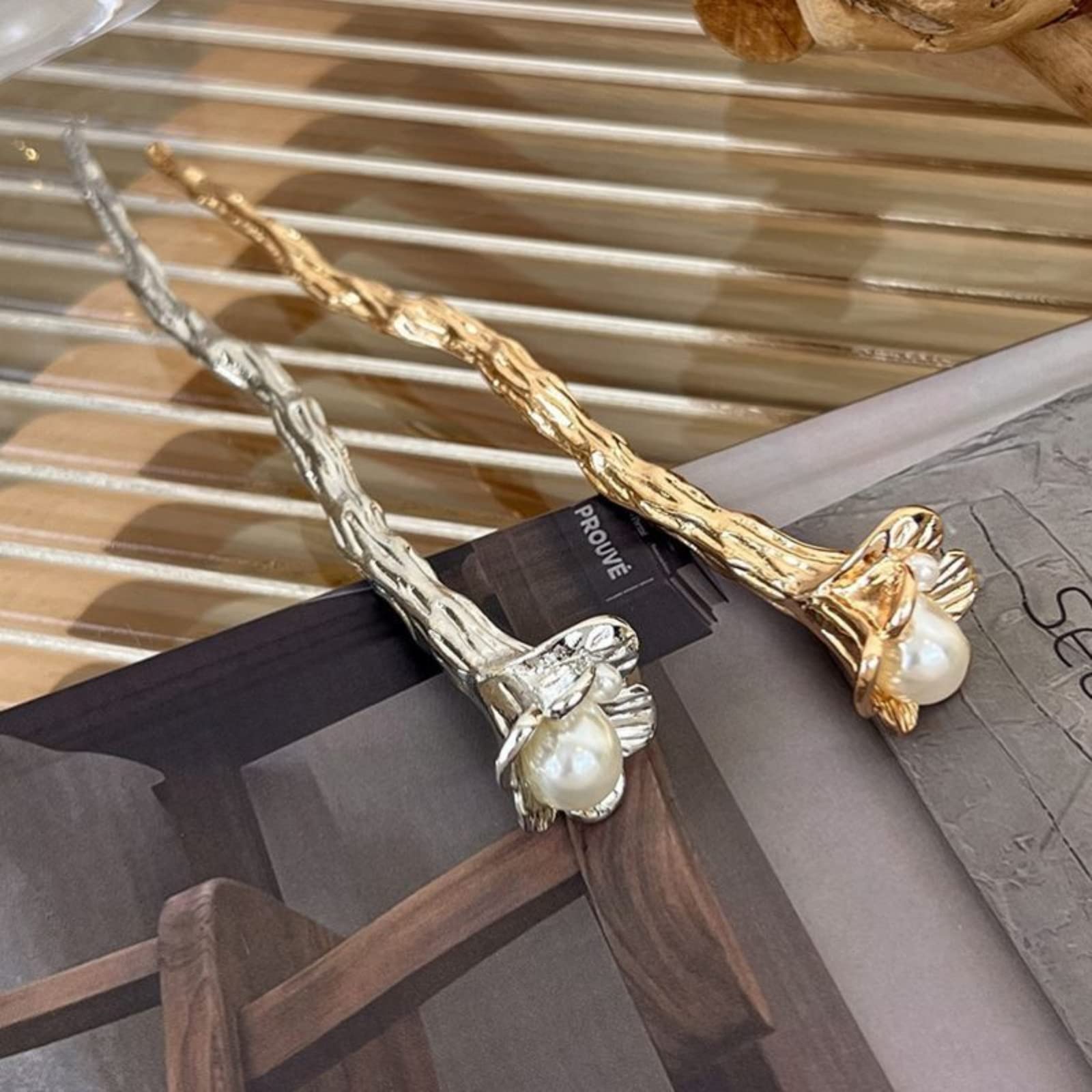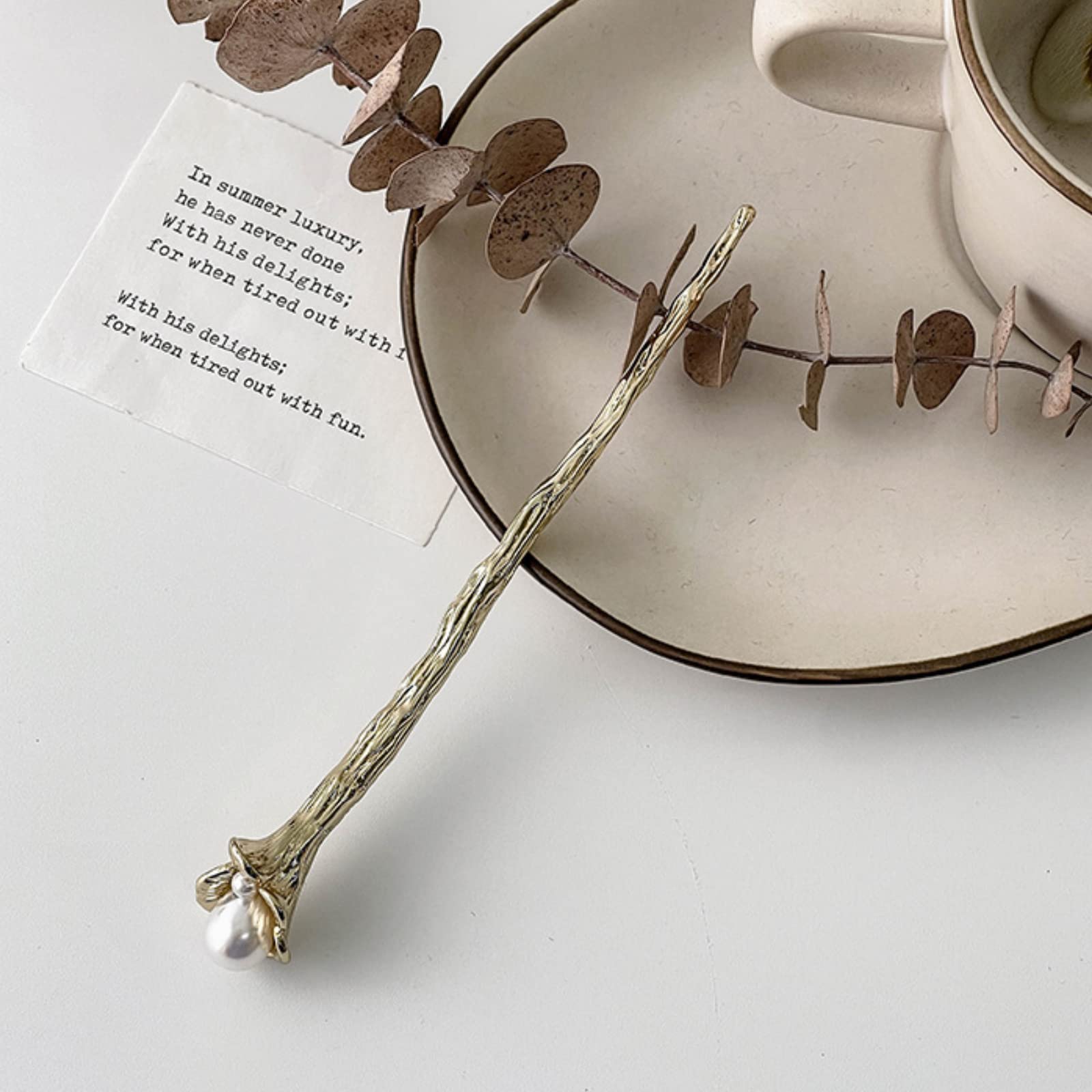【新着特価】かんざし スティック かんざし ヘアスティック 一本挿し シンプル ヘアアクセサリー 浴衣 ゆかた (パール-Gold)