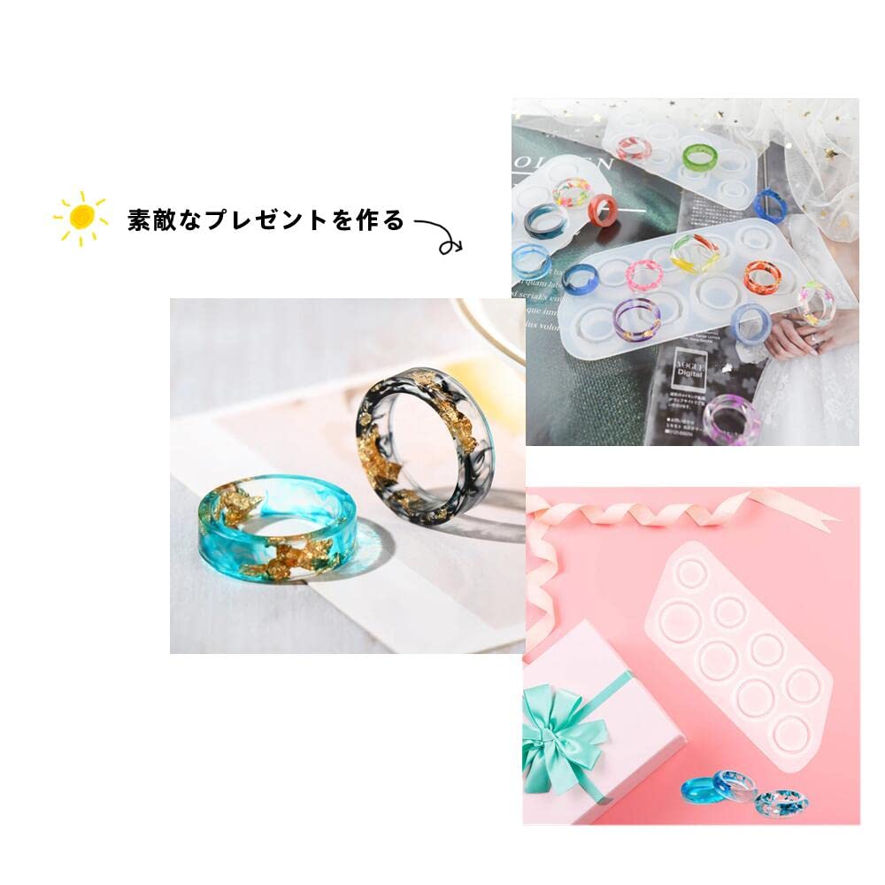 【商品について】シリコンモールド2枚,さまざまなサイズから選択できます。 クラフト素材、クリスタル、石、キラキラ、ドライフラワー、スパンコール、その他お好みの要素を追加します。 あなたはユニークなリングを作ることができます。