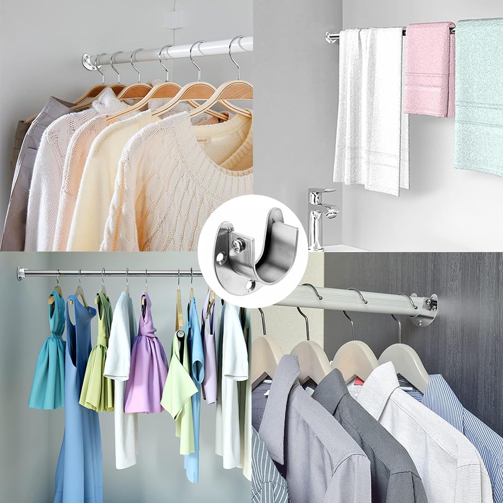 【数量限り】ステンレス鋼 U字型 金具 クローゼットポールソケット ネジ付 クローゼットロッドサポート フランジロッドホルダー クローゼットロッドホルダー シャワーロッド ハンガーポール 2個セット(直径32mmのワードローブロッドに適しています)