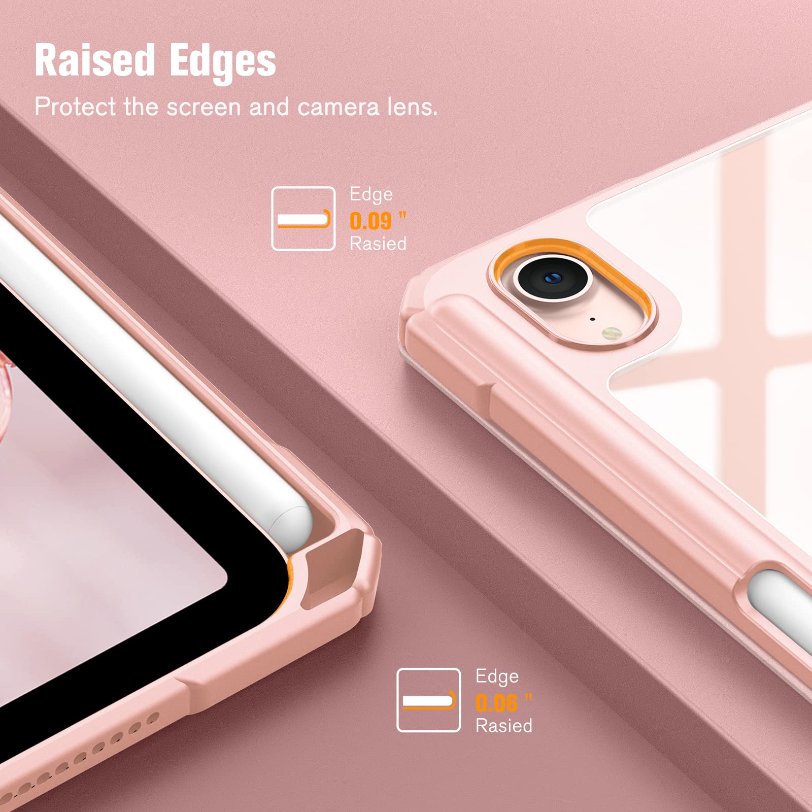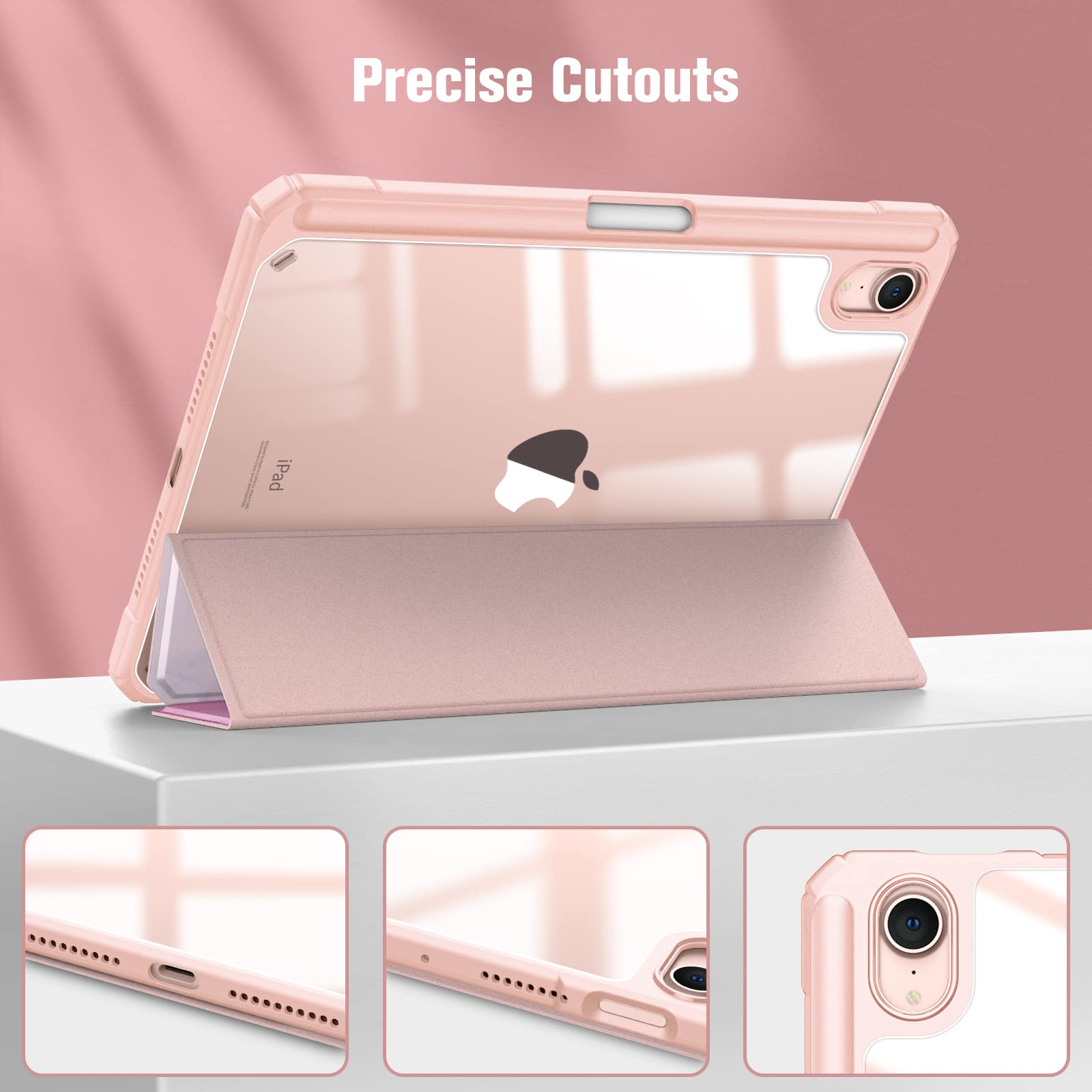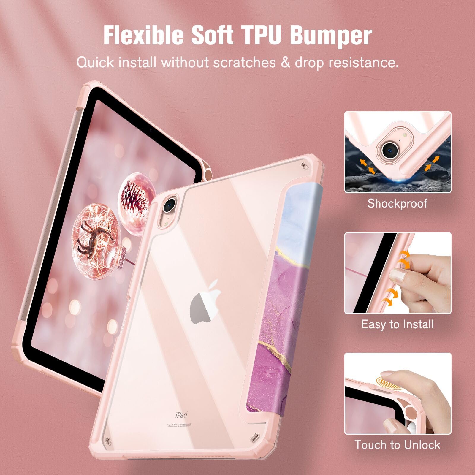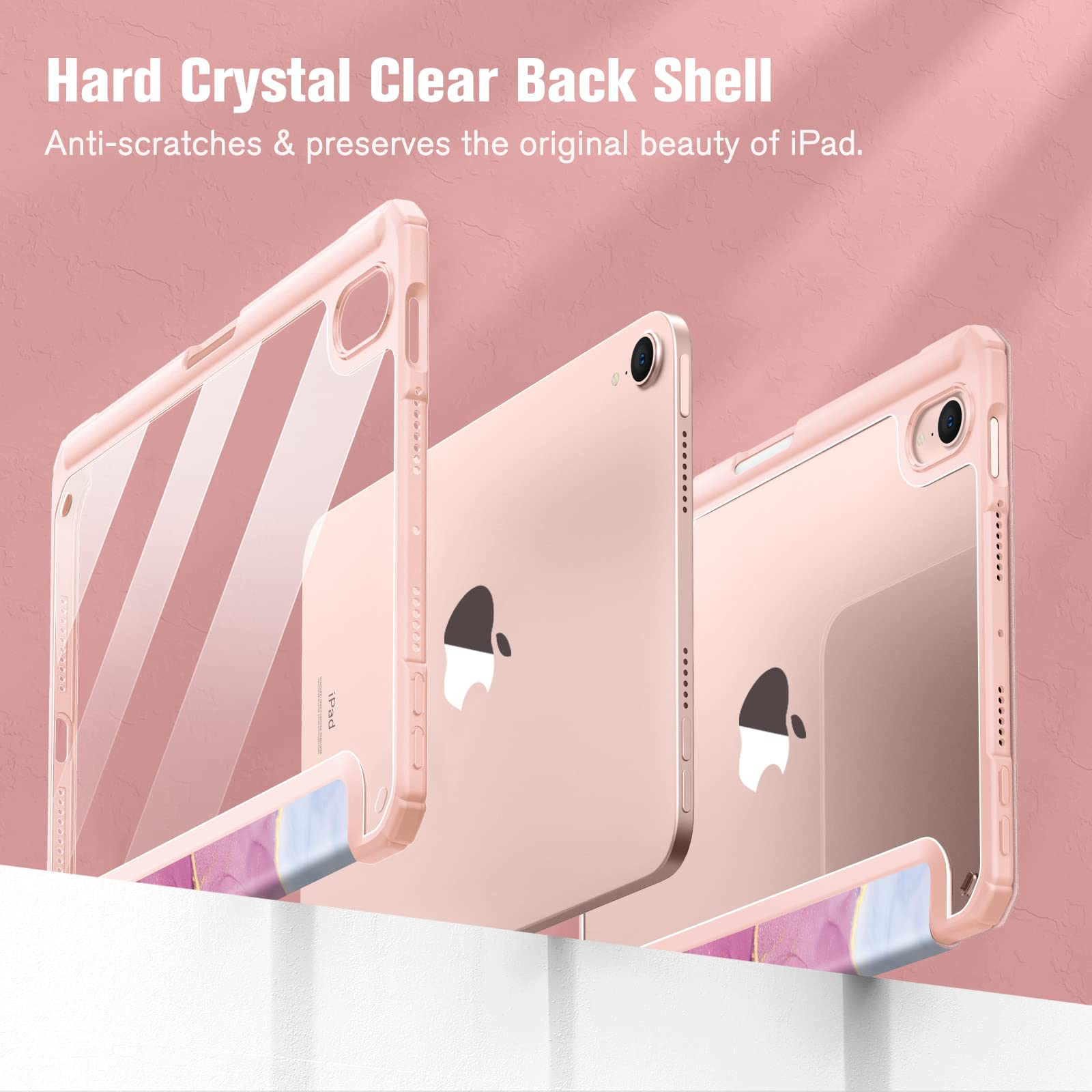 【在庫のみ】Fintie for iPad Mini 7 ケース (A17 Pro 2024) / iPad Mini 6 ケース 2021 8.3インチ 第7/6世代 透明バックカバー Pencil 収納可能 Pencil ワイヤレス充電対応 三つ折スタンド スリープ機能 軽量 薄型 傷つけ防止 PU合成レザー TPU(柄 X マーブルピンクA)