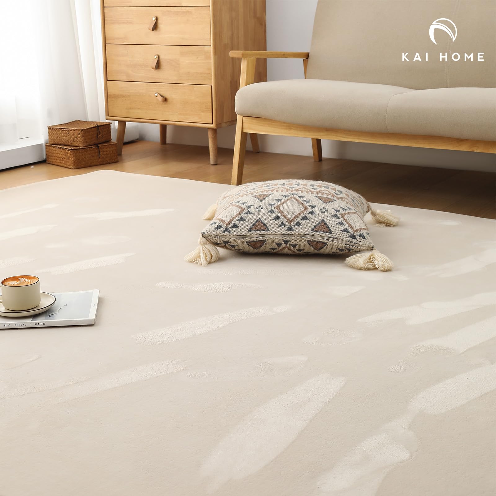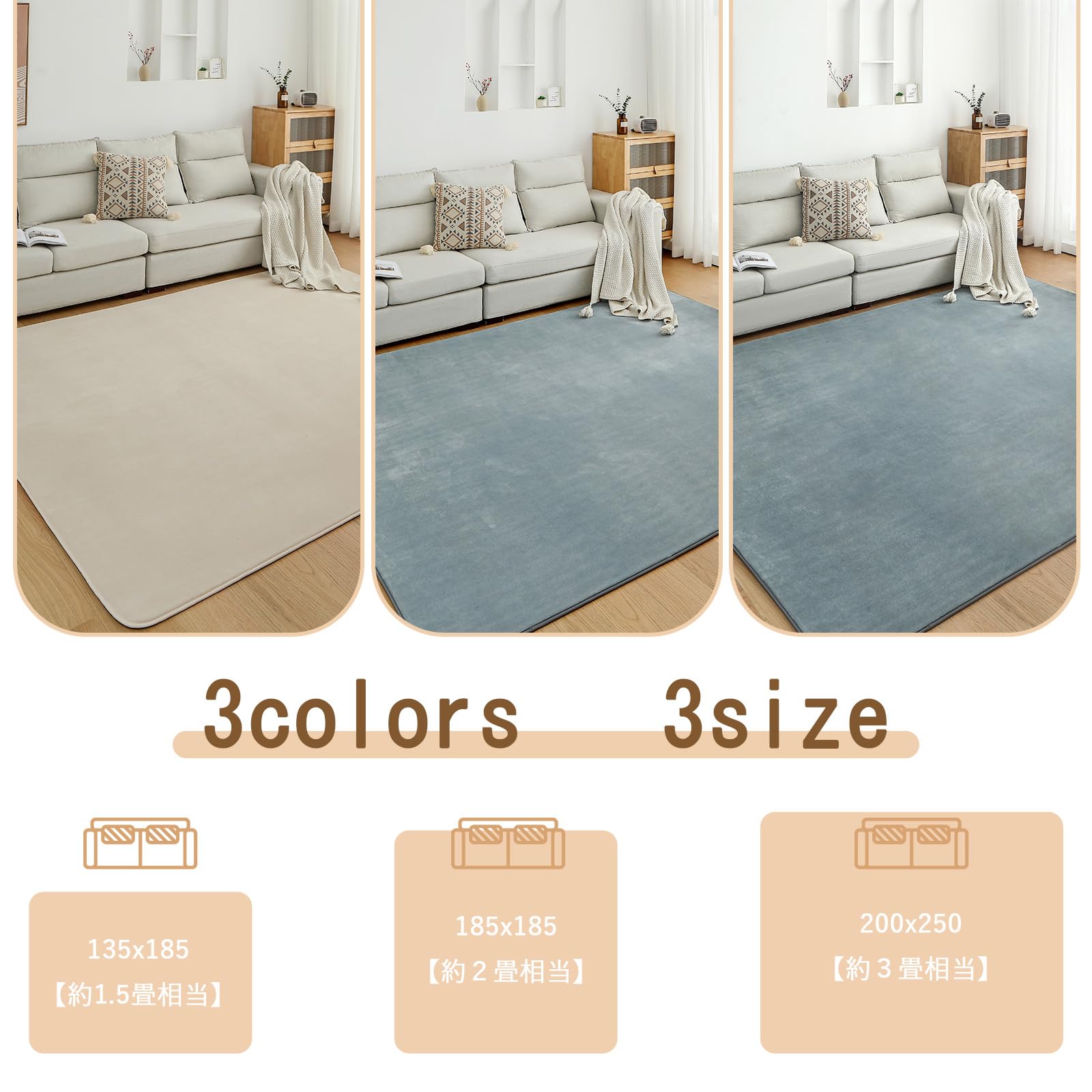 カーペット ラグ ラグマット 短い毛足 厚さの15mm ふわふわ肌さわり アイボリー 無地 滑り止め付き 絨毯 135x185cm?1.5畳 四季対応 抗菌防臭防ダニ加工 速乾性通気性 お手入れ簡単 軽量設計