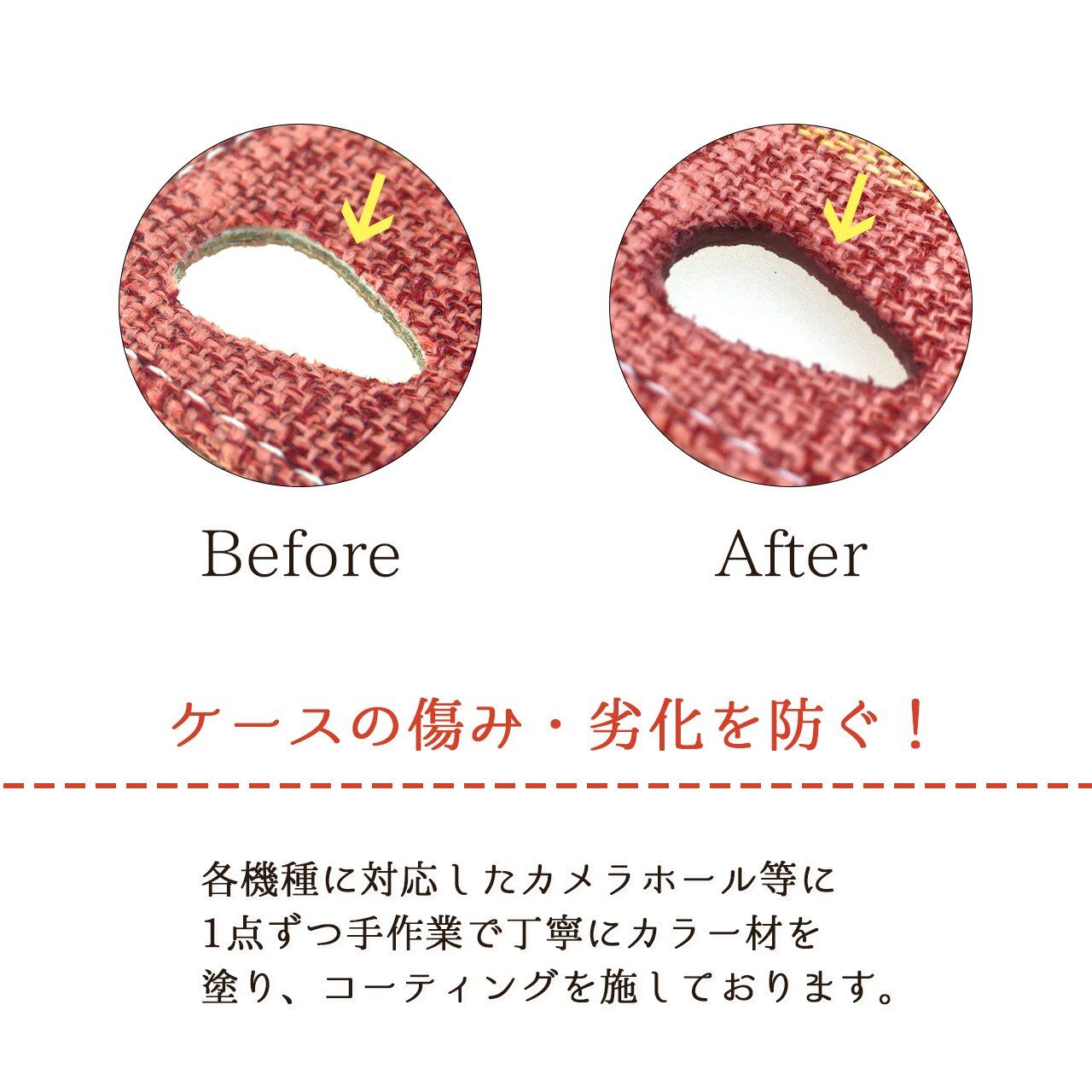 カメラホール周辺の一部は手帳型ケースとTPUケースが接する面積が狭く、接着剤を使用すると破損する可能性があるため、カメラ周辺の一部は接着させておりません。予めご了承ください。