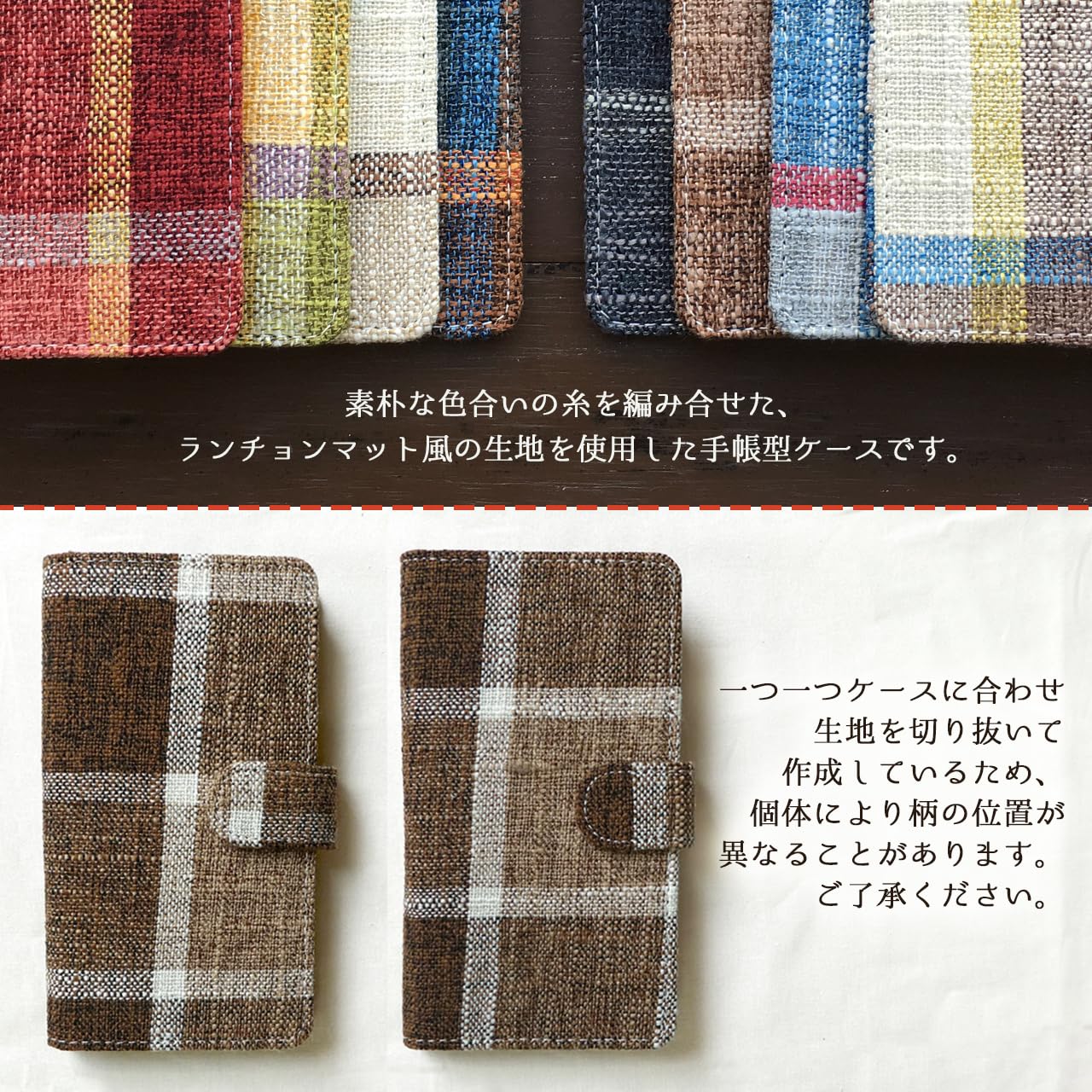 AQUOS sense2 SH-01L SHV43 SH-M08 / Android one S5 専用 ランチョンマット風 手帳型ケース 手帳本体は職人により一つ一つ手作りで作成しております。