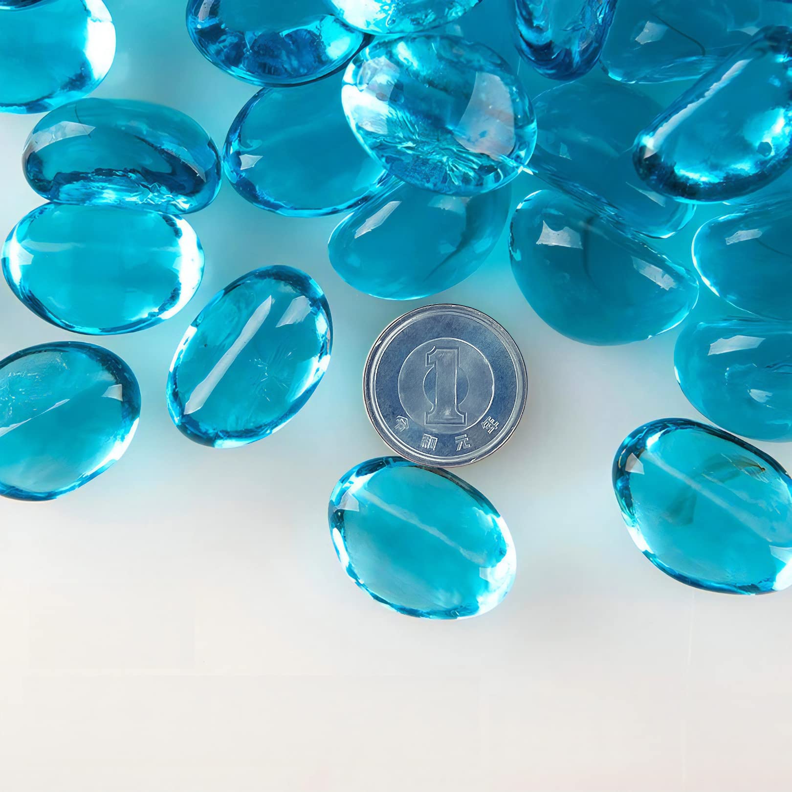 Charmoon アクアリウム 水槽 飾り石 15-25mm 500g カラフル 彩り ガラス クリスタル 底砂 砂利 DIY 園芸 (クリアブルー)
