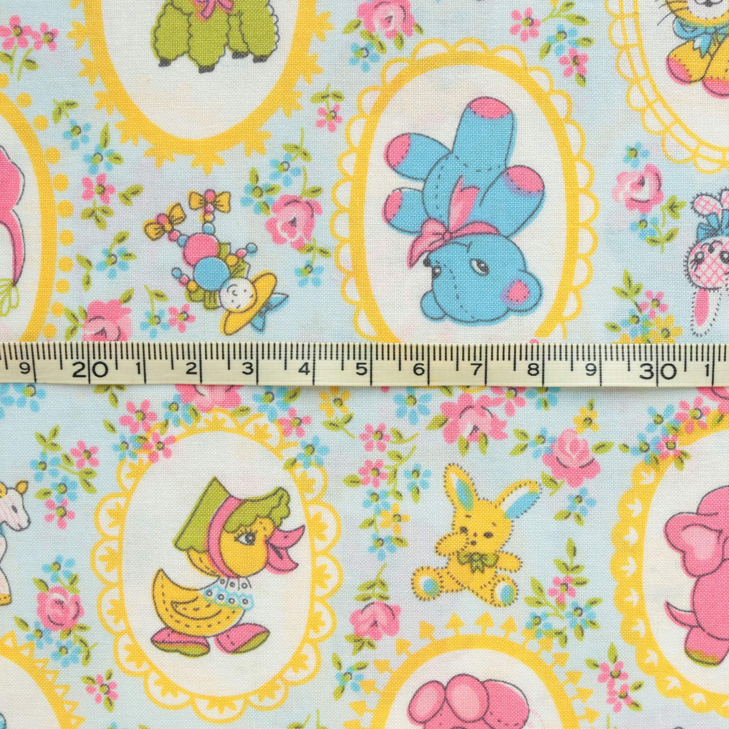 レトロポップな動物たちが描かれたファンシー柄の生地。