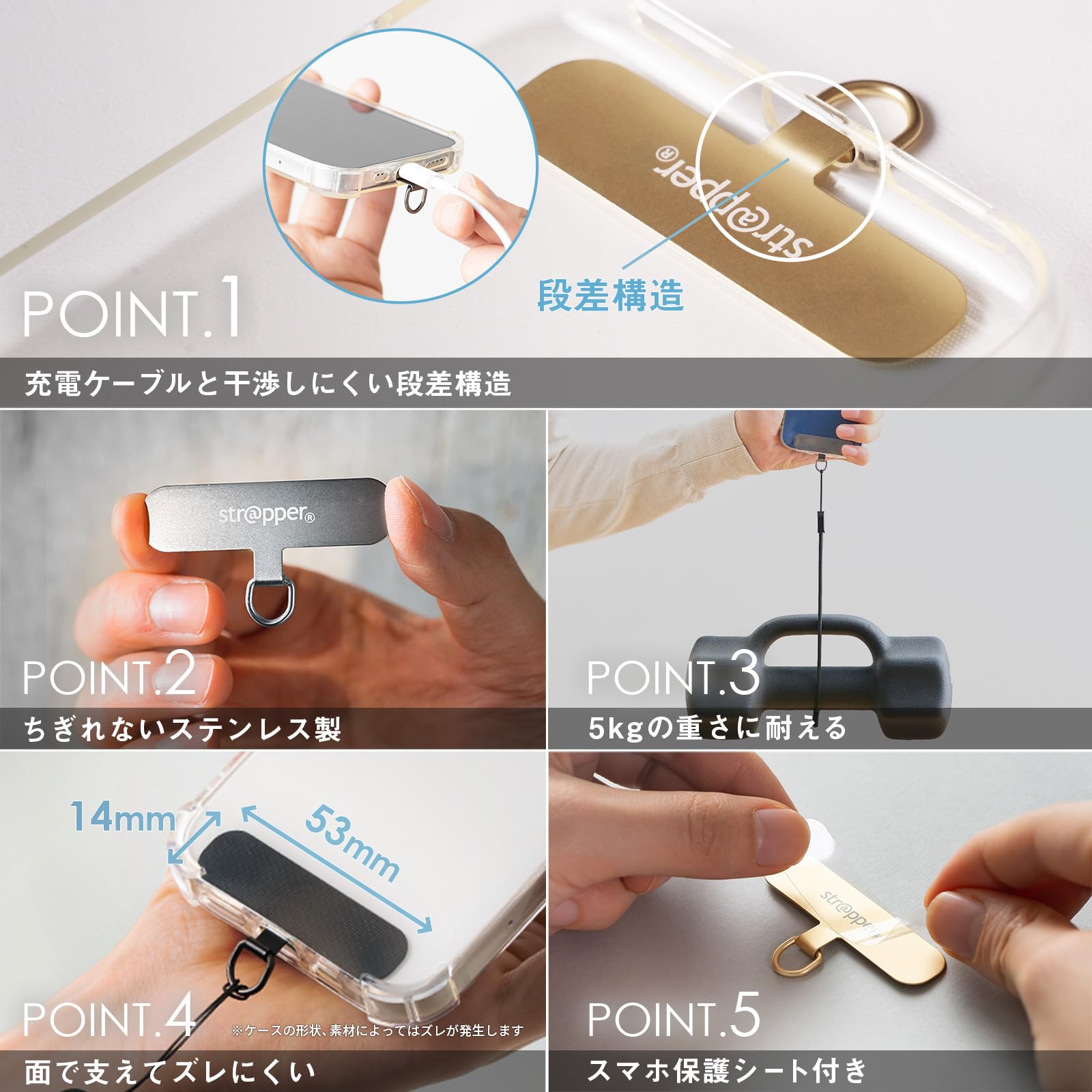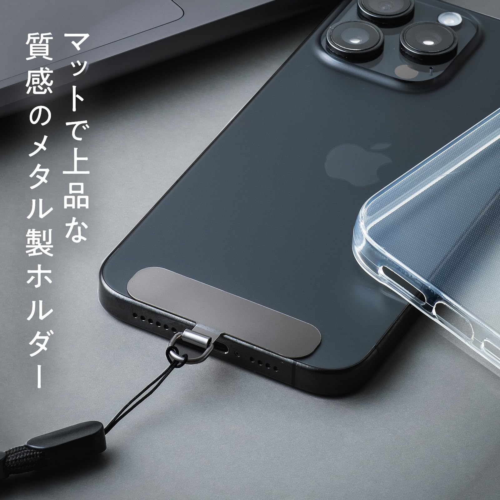 【マットで上品な質感のステンレス製スマホストラップホルダー】ストラッパーはマットで落ち着いた光沢感がスマホの色とぴったりマッチするストラップホルダーです。金属製で切れない/ちぎれないのでスマホ落下防止対策にもぴったりです。