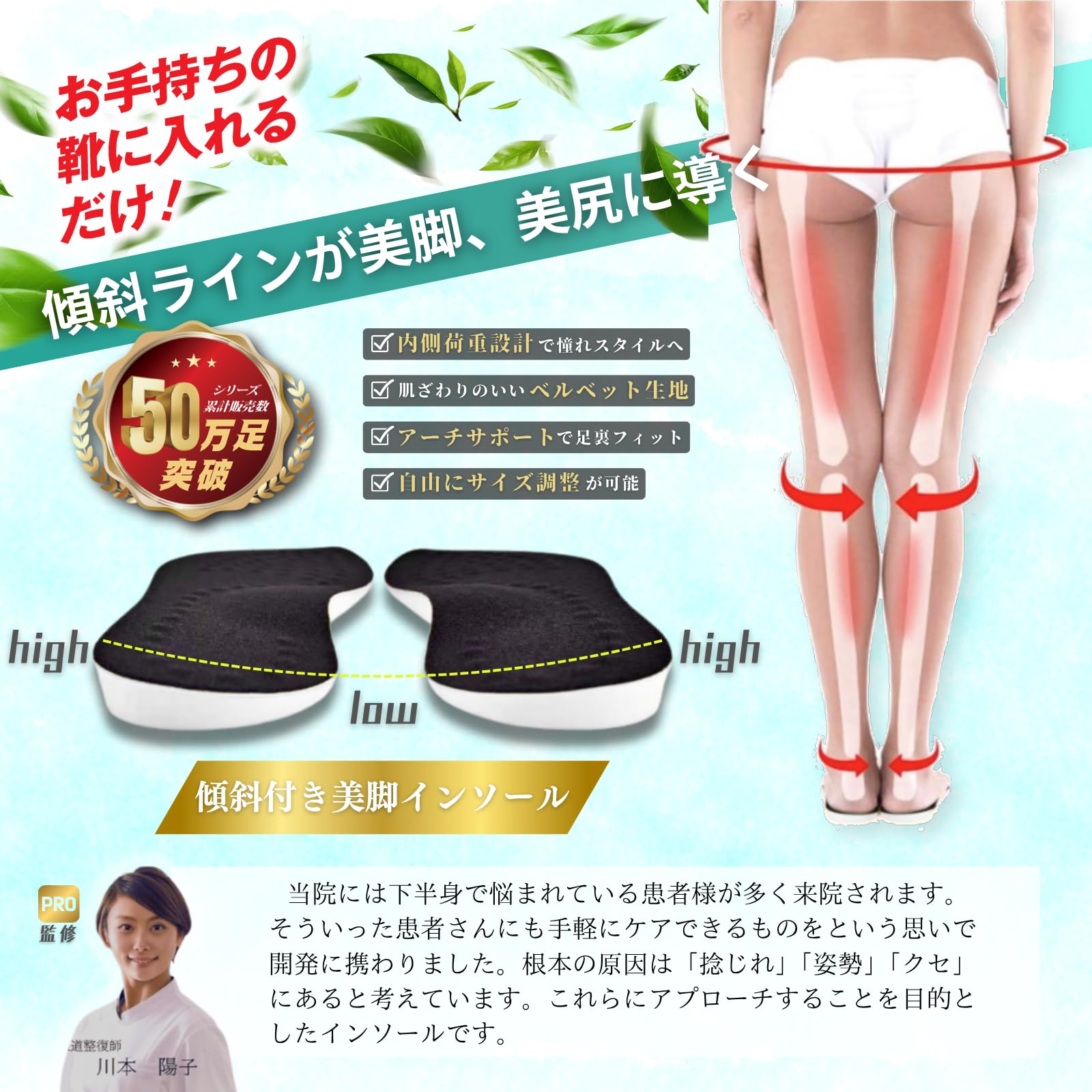 【Poco'ce掲載×専門家監修】 O型脚 傾斜付き 美脚 インソール 中敷き 肌に優しいベルベット素材 男女兼用 eziu (M (24-25.5cm), 2, 組セット)