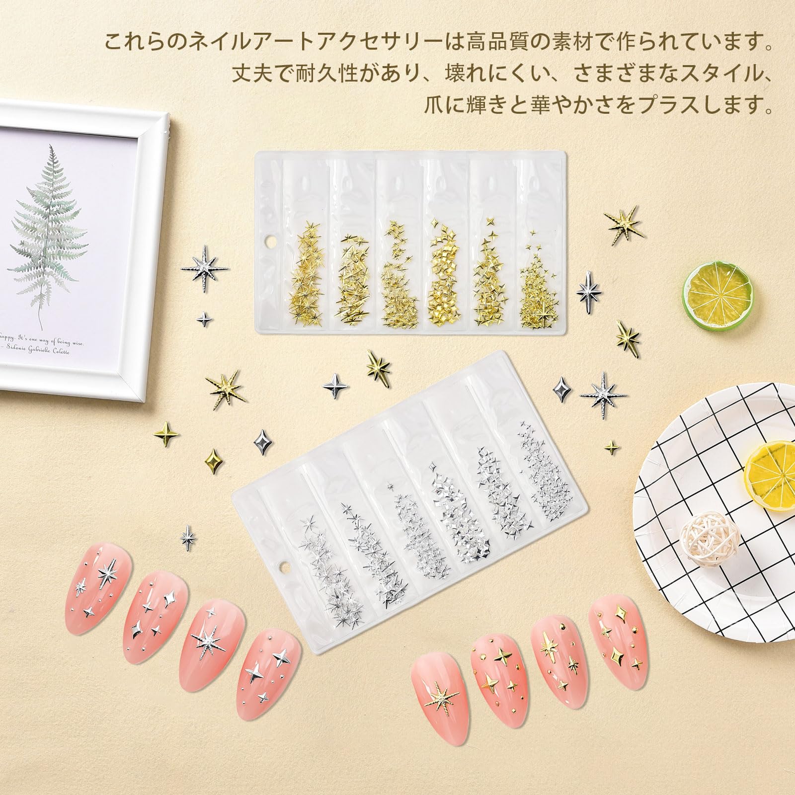 【ネイルパーツ】スターライトと十字架を組み合わせたデザインで、とてもきれいでおしゃれです。綺麗なシルバーの色とゴールドの色をご用意して、高級感があり、女性の魅力をアップします!エレガントで上品なネイルを作りたい時に欠かせない! 【安全な素材】ネイルパーツは高品質の合金素材で作られており、質感と光沢に優れ、頑丈で耐久性があり、長期保管しても錆びません。快適で滑らかな手触りで肌にやさしいです。 【使いやすい】簡単な操作で、専門家にも初心者にも適しています。爪の表面をきれいにし、プライマーでブラッシングしてから、接着剤で爪に適用し、お自宅でもお気楽に綺麗なネイルを仕上げます。 【幅広い用途】ネイルデザインはもちろん、ハンドメイド、携帯ケース、キーホルダー、ジュエリー、衣類などにもご利用いただけます。 日常生活、クリスマス、ハロウィン、結婚式、誕生日、バレンタインデーなどにも適しています。 【パッケージ】 ネイルパーツ2袋入り、ゴールドネイルパーツ*1袋、シルバーネイルパーツ*1袋。