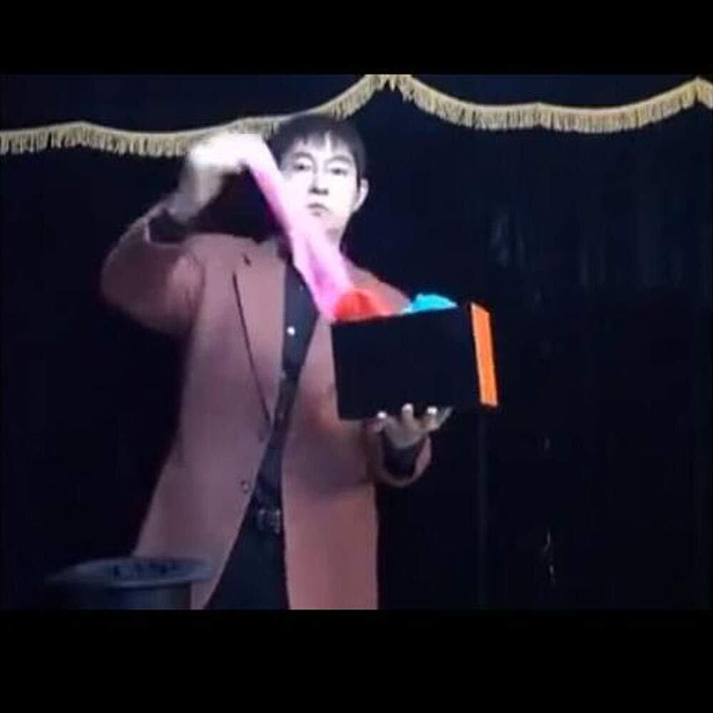 プラスチック製の板を組み立ててボックス状にすると、シルク(シルク製のハンカチ)が数枚わきだすように出現します。 さらに 小さいシルクが次々と大量にわきでるように出現します。