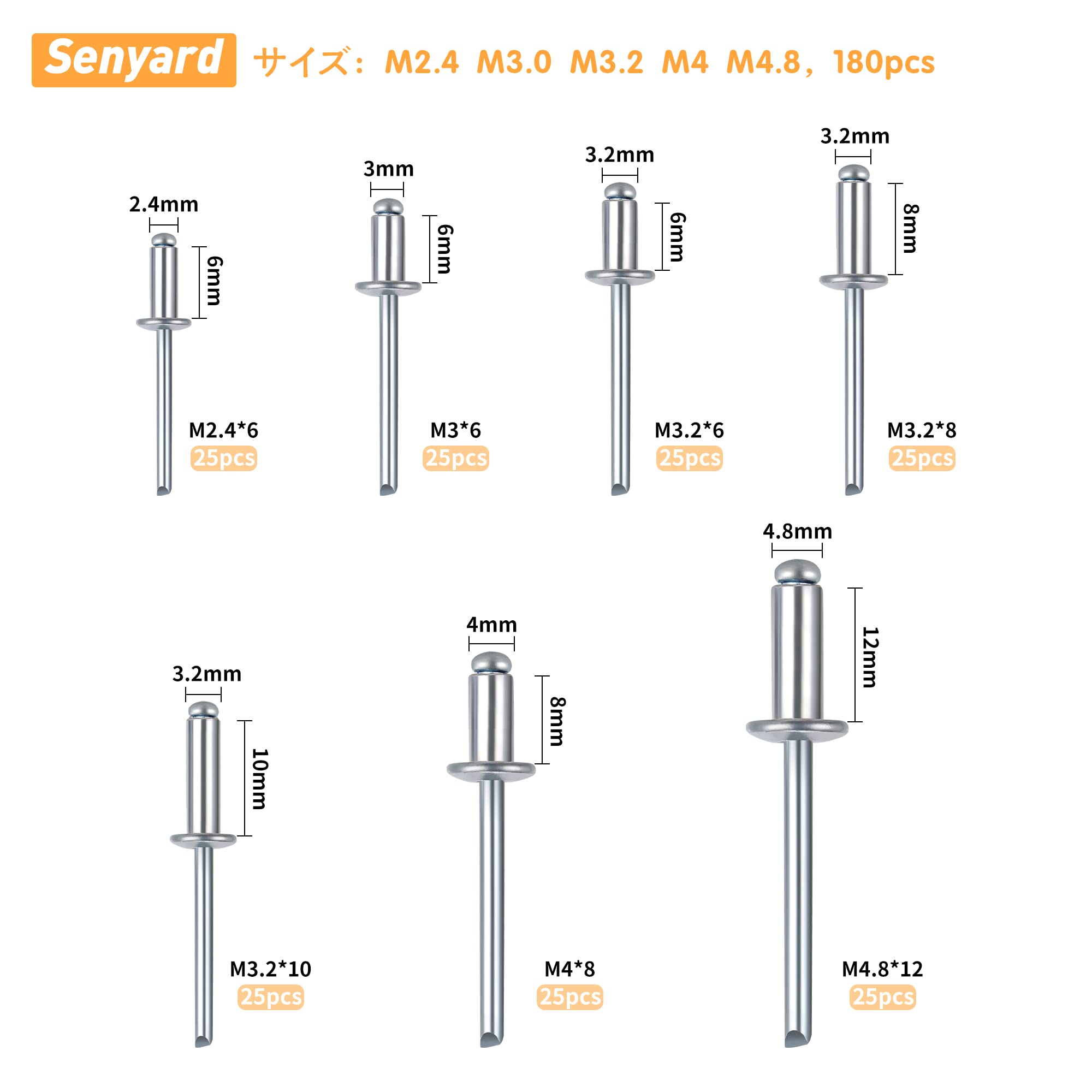 Senyard ブラインドリベット アルミニウム 耐食 耐圧 M2.4 M3.0 M3.2 M4 M4.8 ブラインドリベット/リベットファスナーキット