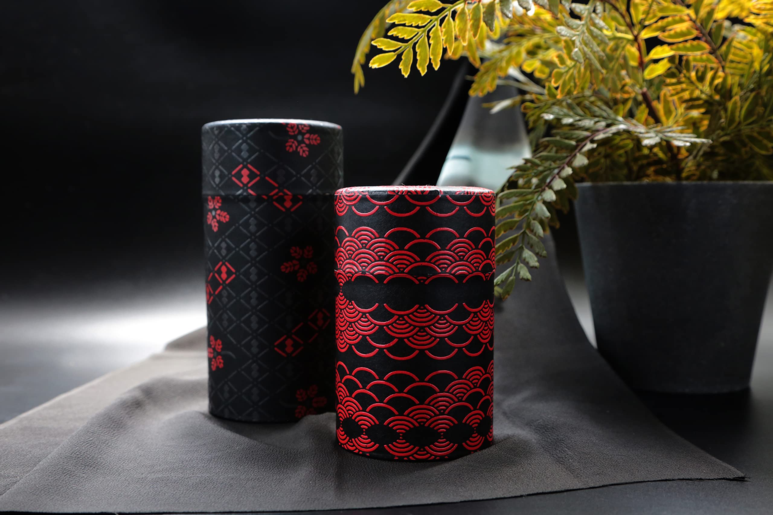 【新着特価】野口熊太郎茶園 茶筒 茶缶 大容量 200g 和紙貼 中蓋付き 印傳(印伝)ひょうたん柄 黒 日本製 おしゃれ