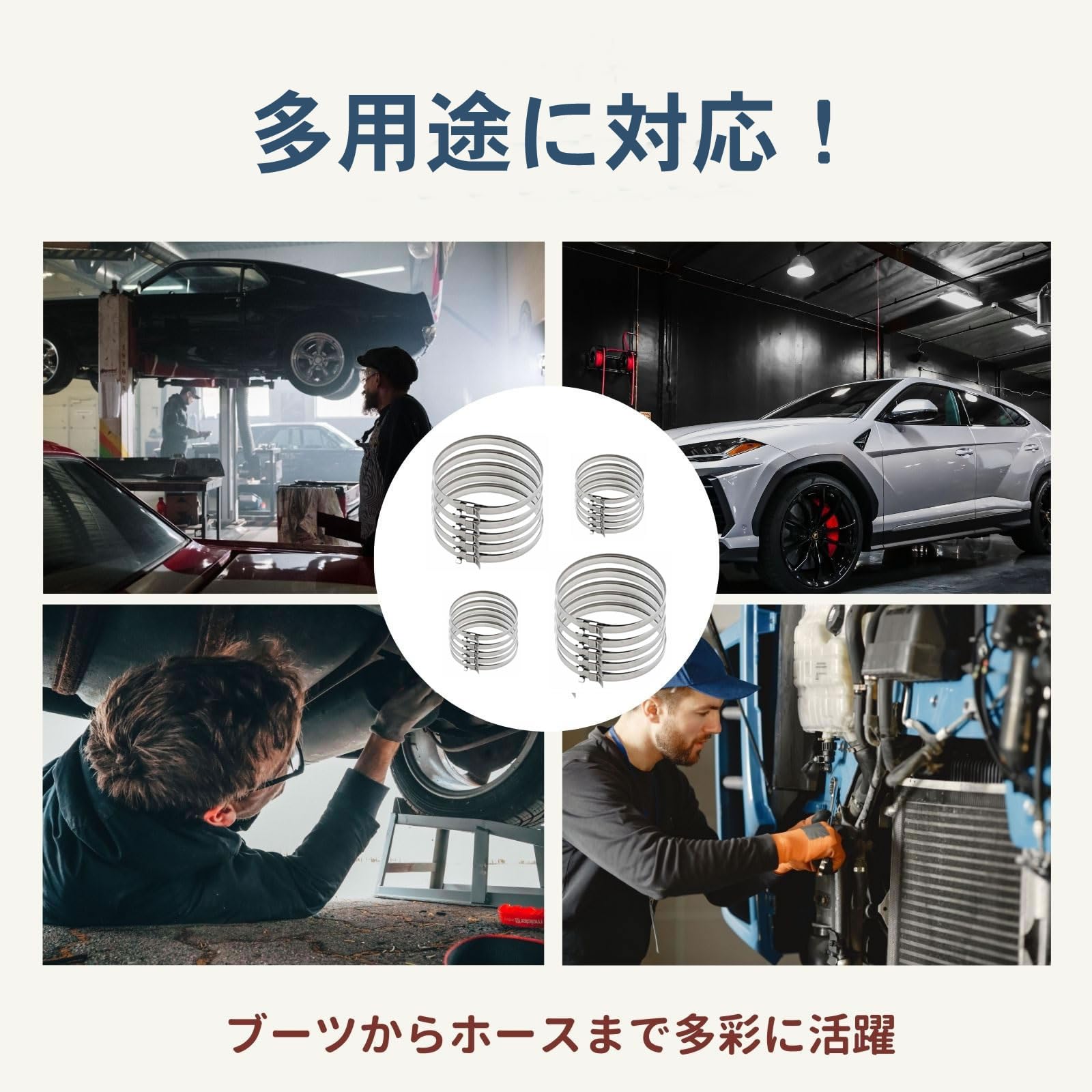 ステンレス製で強力な耐久性:錆びにくく、長期間の使用に耐えるステンレス製のブーツバンド。過酷な環境でも性能を発揮し、しっかりとブーツを固定します。安心してお使いいただる締め部品です。