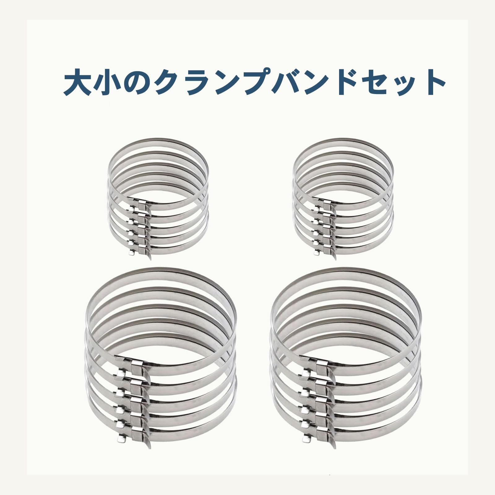 サイズ:クランプバンド(大)の調整可能の直径:40mm-200mm、幅6.5mm クランプバンド(小)の調整可能の直径:20mm-90mm、幅6.5mm