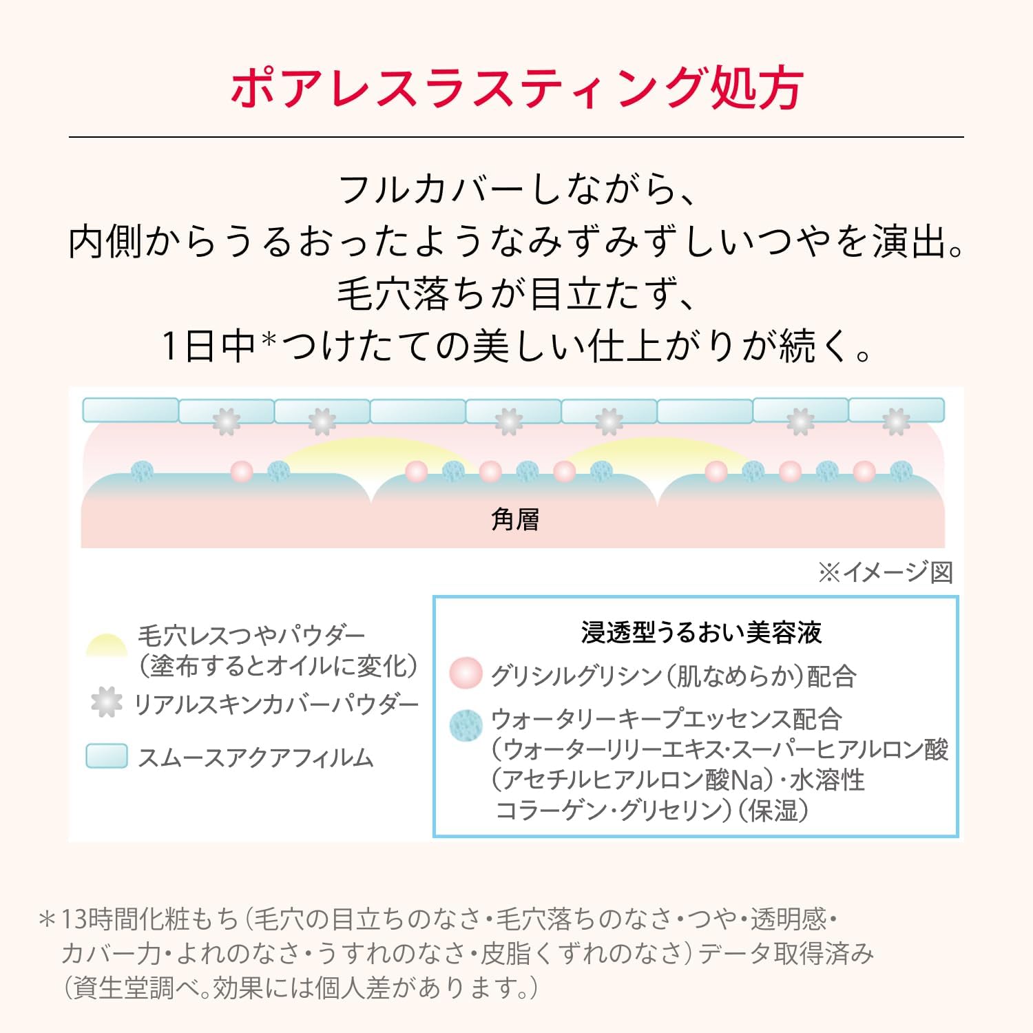 【ポアレスラスティング処方】フルカバーしながら、内側からうるおったようなみずみずしいつやを演出