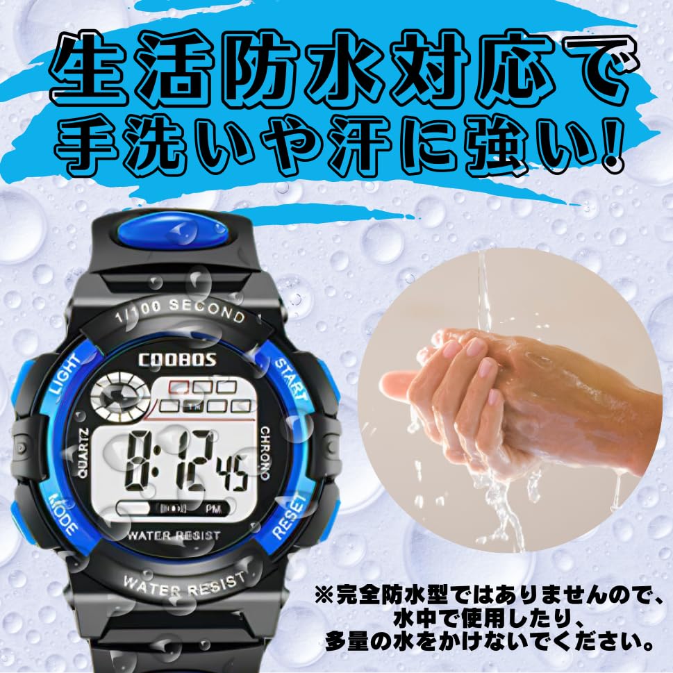 ?2.強度と耐久性: 子供たちは遊ぶのが大好きですのでこの時計は特に頑丈に作られています。 落としても壊れにくい素材を使用し水や汚れにも強いためアウトドアやスポーツの際にも安心してお使いいただけます。