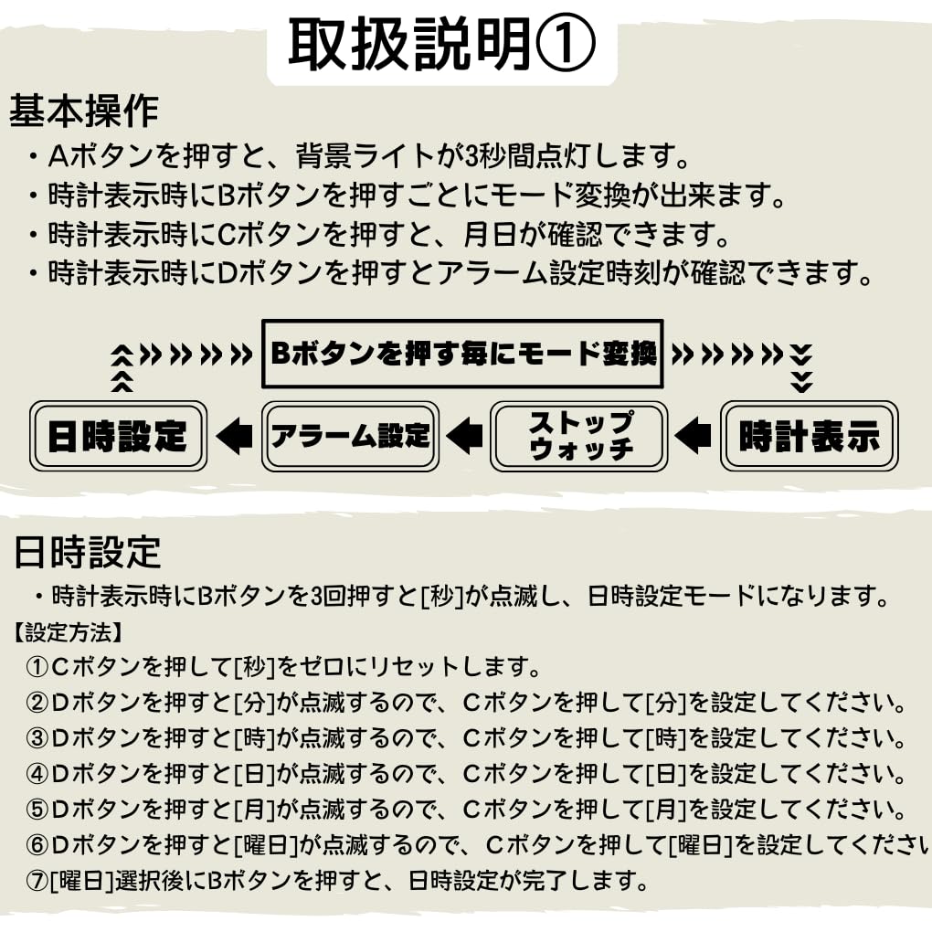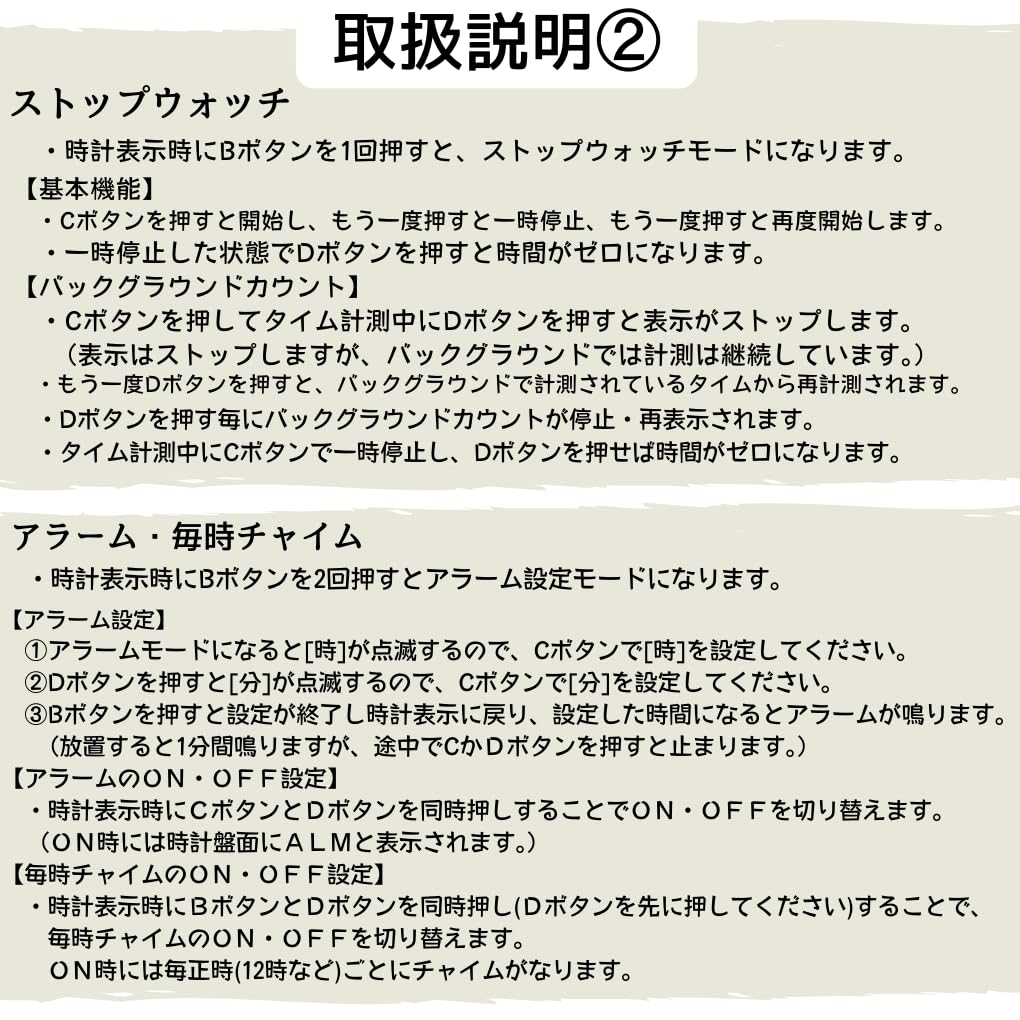 ?3.使いやすさを追求: デジタル表示のため子供でも一目瞭然。 大きく明瞭な数字で時間がすぐにわかります。 またボタンの配置や機能もシンプルでお子様でも簡単に操作できます。