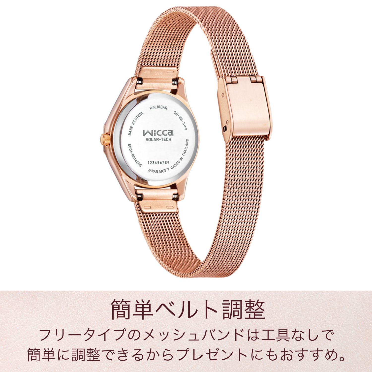 【ときめくときwicca】人気のデイ&デイト表示付き12角形のメッシュバンドモデルが登場です。電池交換不要のソーラーテック搭載、便利な日付と曜日のカレンダー付。機能的でありながらカジュアルなファッションにも、フェミニンなファッションにも合わせやすいデザインです。
