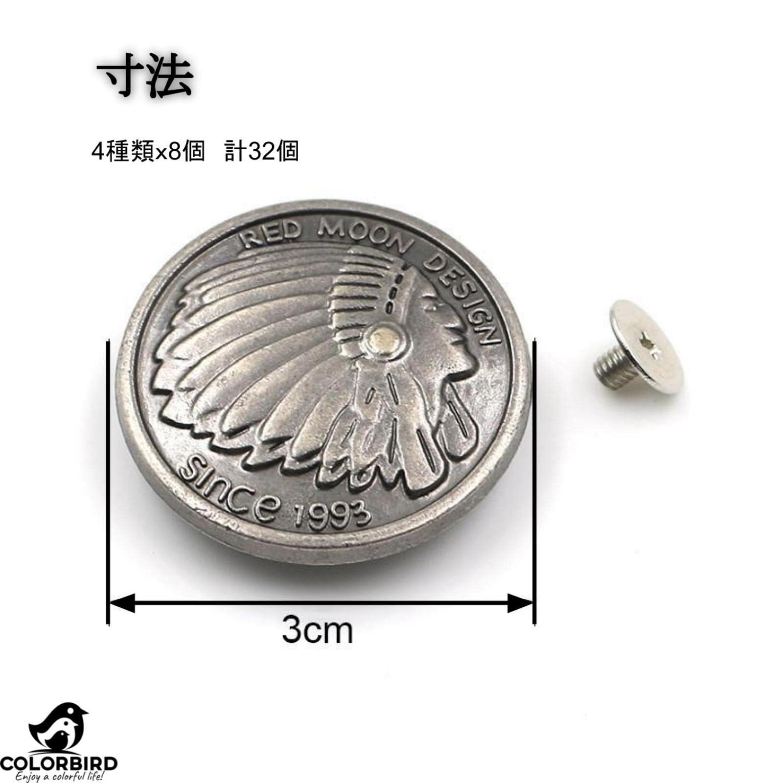 COLORBIRD コンチョ 32個セット 女神 唐草模様 インディアン イーグル デザートイーグル (古銀色)