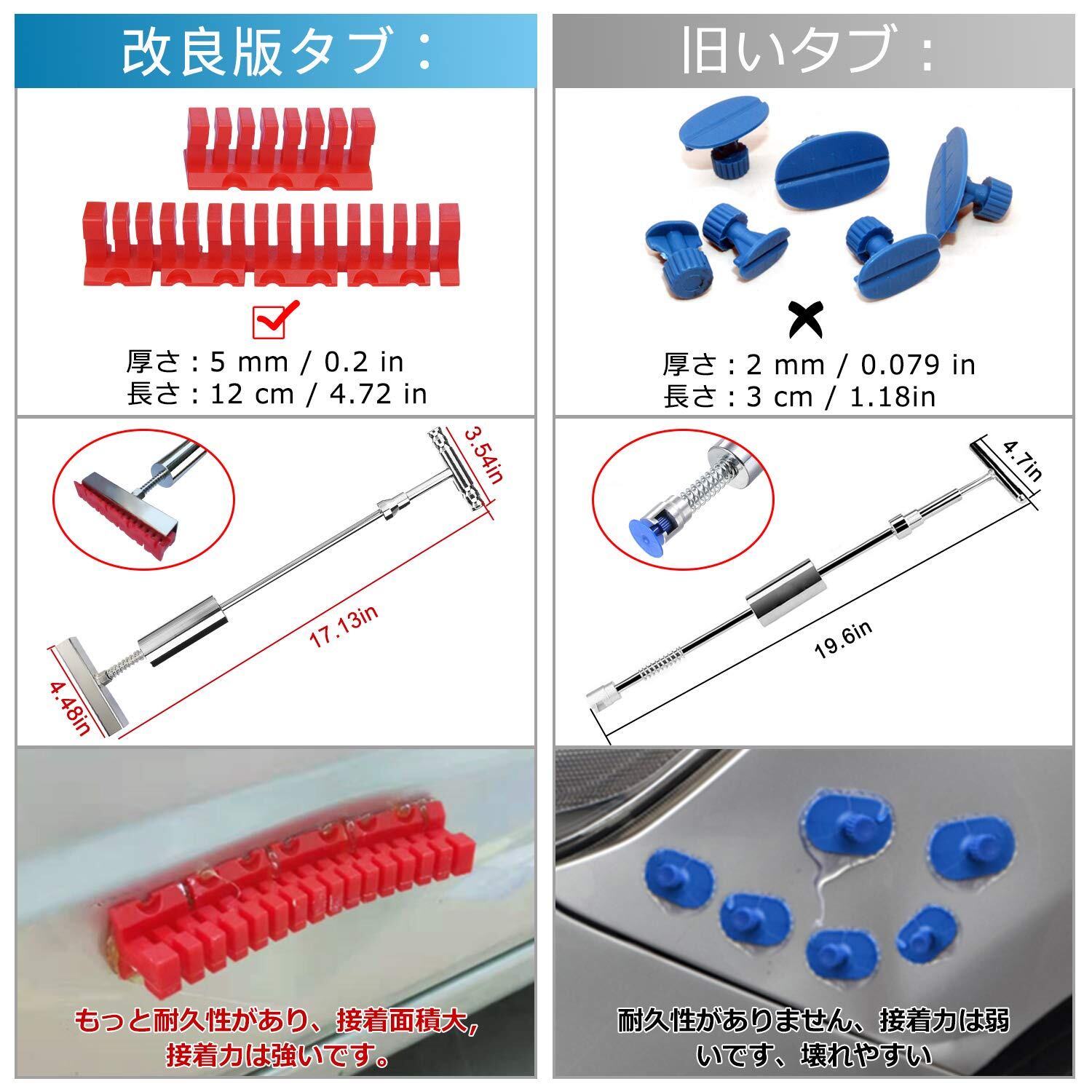 【改良版タブ】はよくお客様のご意見を聞き、応じて最新改良のタブは出ます:①ホットメルトの接着面積拡大する,接着力は強いです。接着面積の問題で強度がの問題か解決する。②改良版タブは新しい高品質な素材で作られるので、もっと耐久性があり、強い靭性。③凹みにぴったりフィット、4つの用途、循環使用でできます。小さ凹みと大き凹みも簡単に補修が出来ます。様々な凹みに対応いたします。