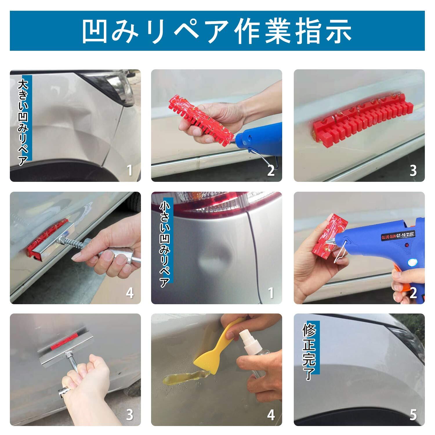 【注意事項】大き過ぎる凹み、小さすぎる凹み、鋭角についている凹み、プレスラインにかかっている凹み等修復不可な場合がございます。 また、お客様はDIYの簡単作業で100%完全な修復を必ずしもではないです。作業方法と個人的原因によって、修復効果も違います。