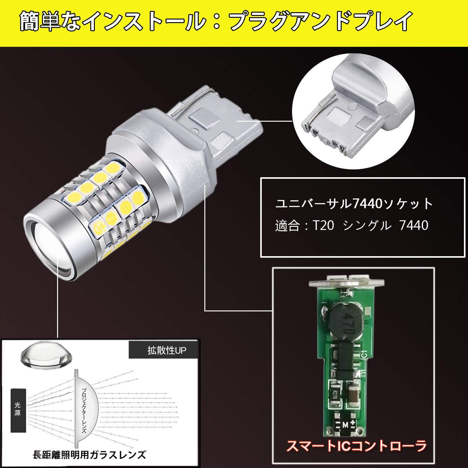 【バルブ型式】T20 シングル ウェッジ球 無極性;7440 / W21W / T20 【セット数】4000LM /2個【ケルビン数】6500k,【消費電力】12W,【電圧】10 - 30 V,【発光色】ホワイト;【LED数】28個。【寿命】 ?50000時間。【】ブランド名:TORIBIO(登録第6135494号) 【サイズ】高さ:48mm X 直径:15mm X ベース幅:15.8mm