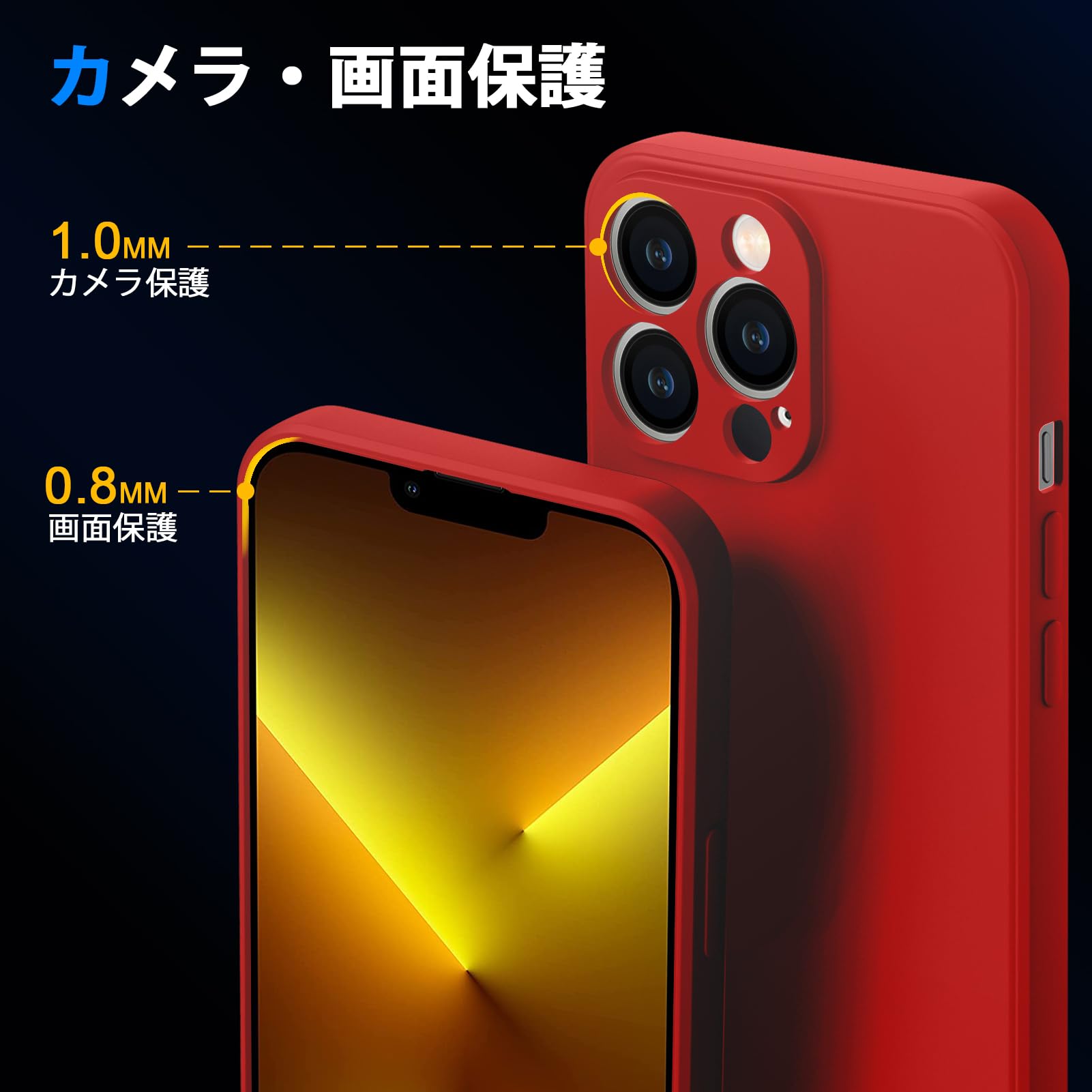 【全面保護】フチが高低差を設計し、液晶画面とカメラレンズをキズから保護します.本体の落下時に伝わる衝撃をケース内側の四隅(エアクッション)で吸収するので、衝撃を最小限に抑えます.