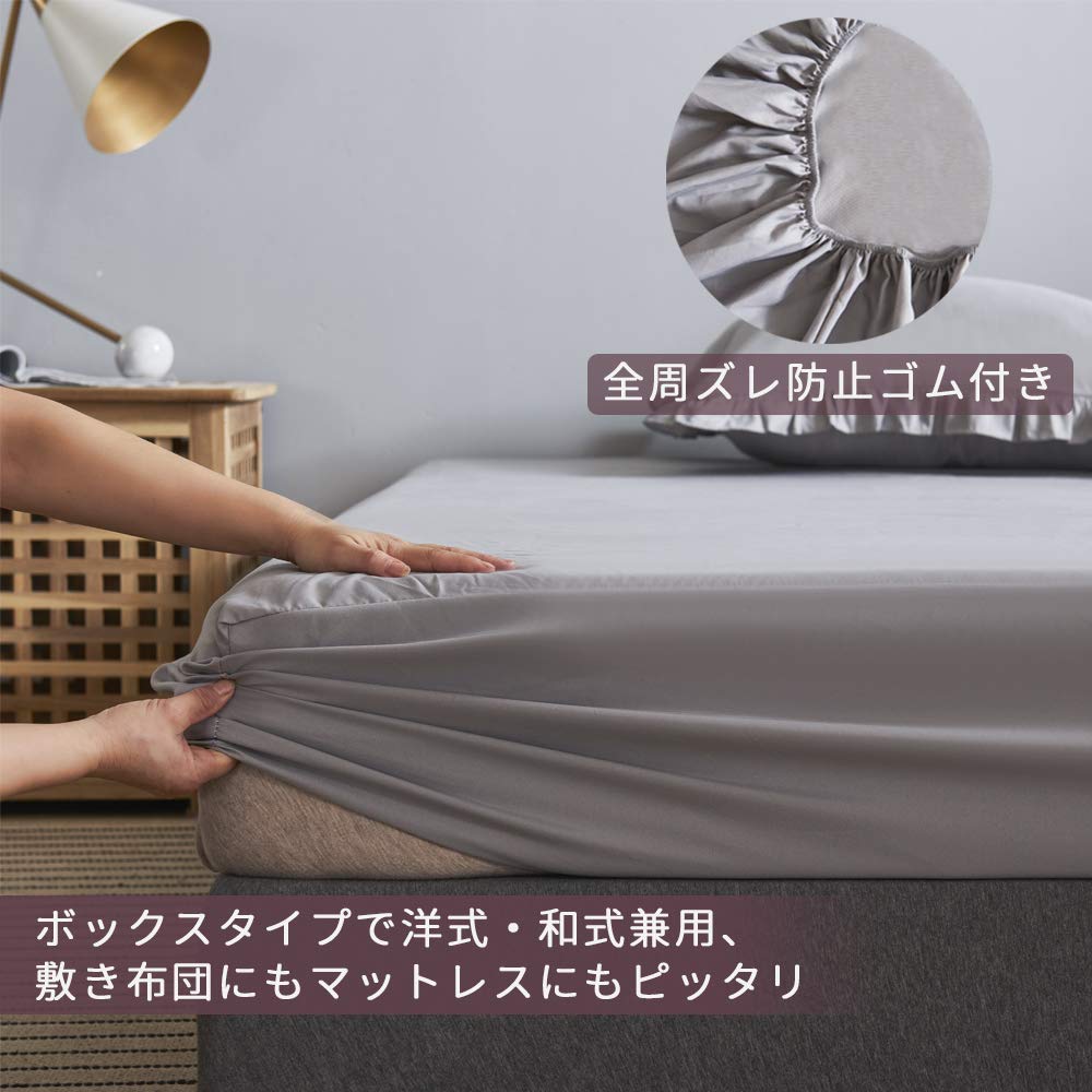 HOdo Home 布団カバー セミダブル 4点セット 掛け布団カバー ベッドカバー 枕カバー ベッドシーツ ボックスシーツ 洋式・和式兼用 寝具カバーセット フリル付き ピーチスキン加工 洗い替え 速乾(セミダブル ライトグレー)