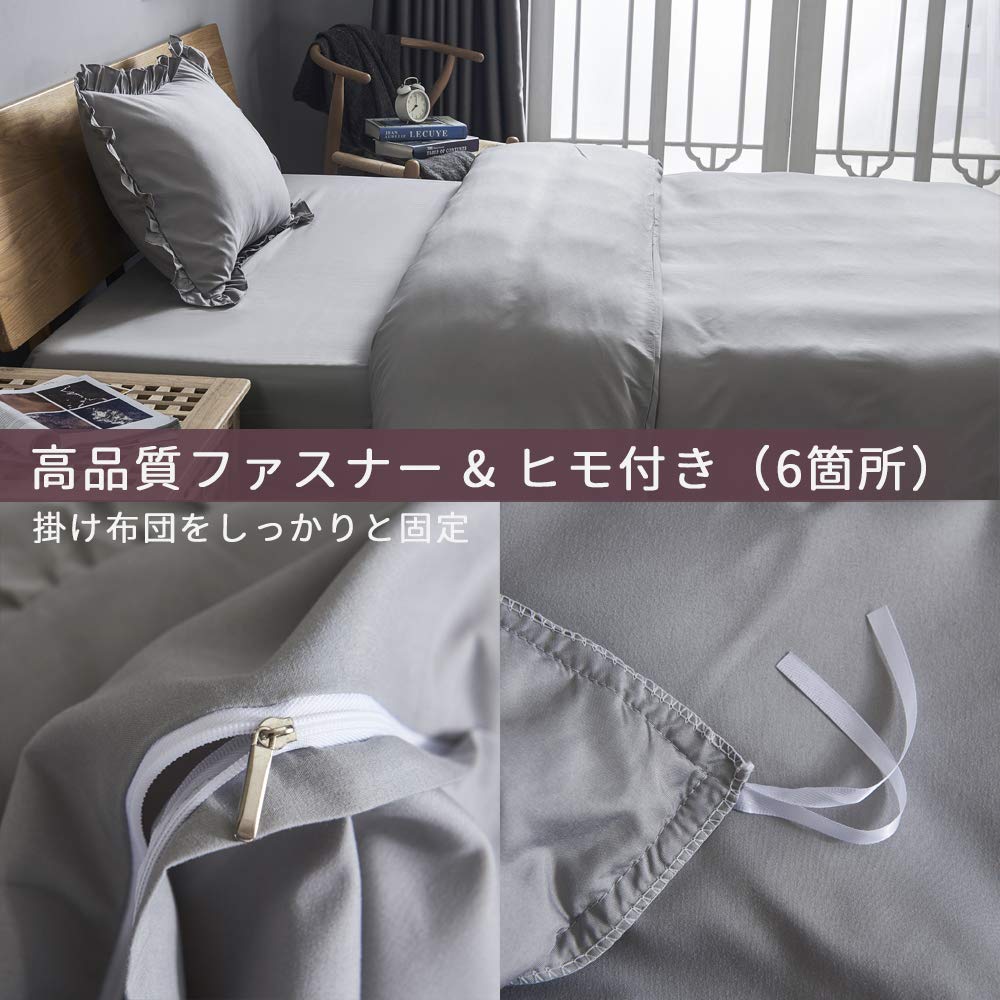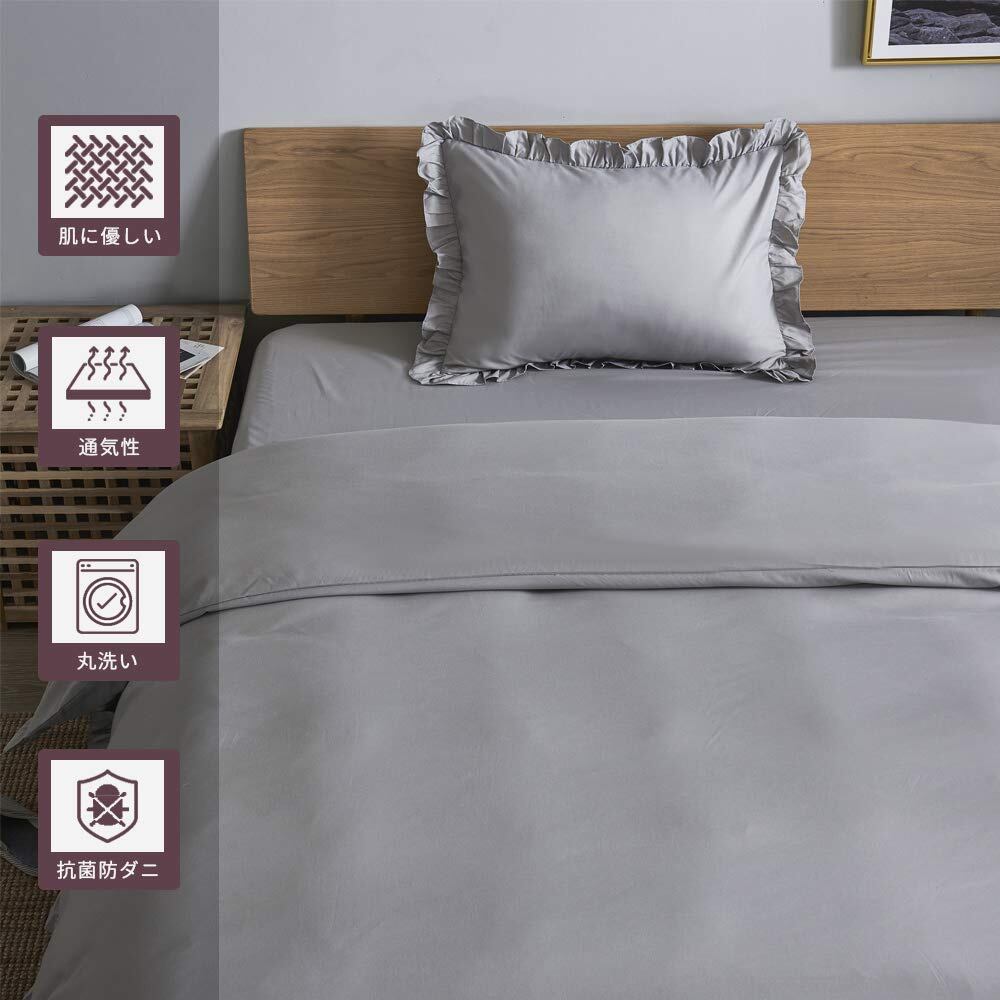 【スタイリッシュなデザイン】:掛け布団カバーと枕カバーは可愛いフリルが付いています。無地で色は派手すぎずにどんなインテリアにもピッタリと雰囲気を合わせます。体に溜まった疲れをちゃんと取れて心が癒されるようなリラックス感を感じさせます。