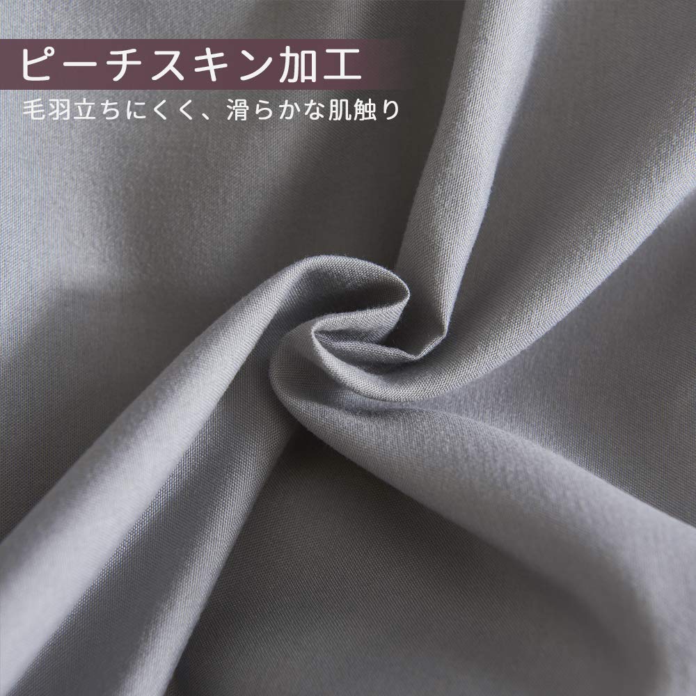 【仕様】:掛け布団カバー・170X210cm、枕カバー・43X63cm×2枚、ボックスシーツ・120X200+30cm。ポリエステル100%の生地を使用しています。シワや毛玉ができにくい寝具カバーセットです。きめ細やかなピーチスキン加工で柔らかくて肌に優しいから、敏感肌の方でも安心してご利用頂けます。