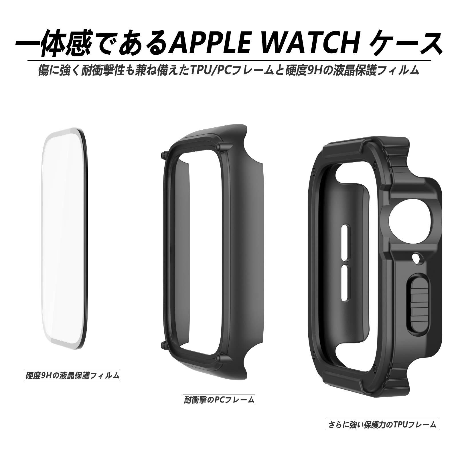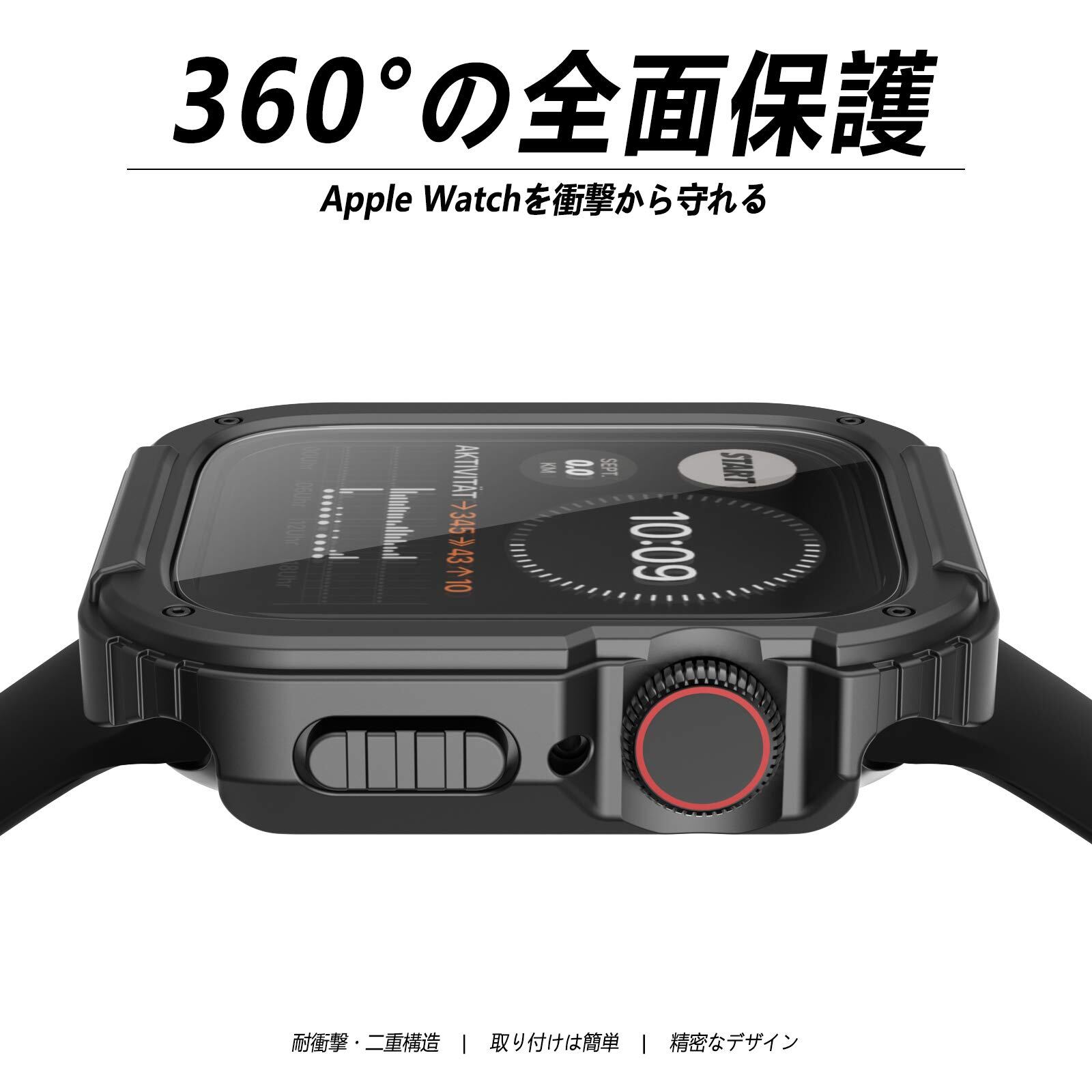 「360°の全面保護」強化ガラスフィルムとPC/TPU二重フレームの仕組みでApple Watchを引っかきキズ、衝撃、偶発的な落下から保護られる。0.33mm超薄の強化ガラスフィルムはさらに高透光率と高感度の3Dタッチを実現できる