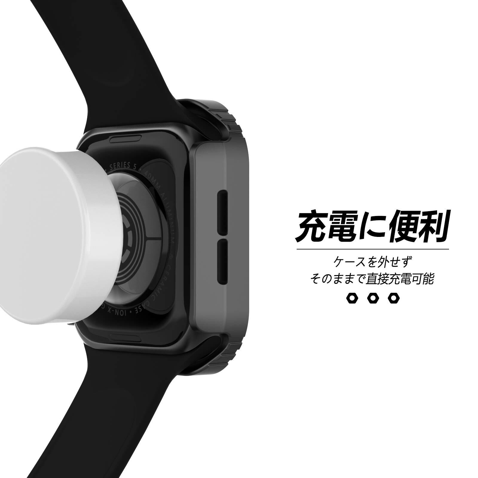 「取り付けが簡単」すべての穴はApple Watchに一致して、取り付けが非常に簡単。セットしたバンドを外す必要がないし、iWatchを充電する前に本ケースを取り外す必要もない