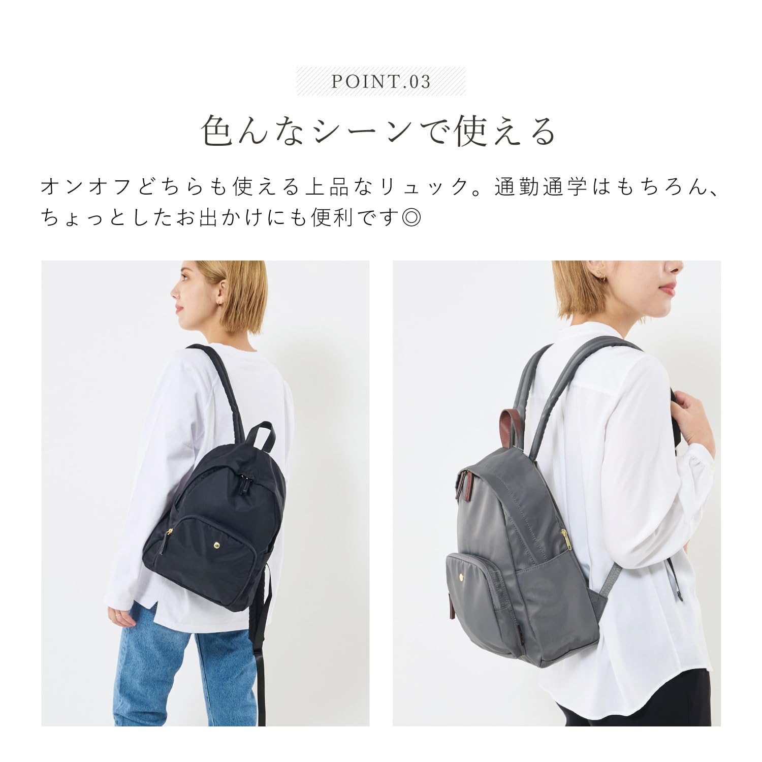 ハンドルやショルダーにこだわった人気の肩楽シリーズに、新型が登場!肩の負担を軽くするために、ショルダー内のクッション材にこだわりました。また、ショルダーの裏側はコットン調の生地を使用し、肩からずれ落ちにくくなっているのがポイント。背面全体にはクッションが入っているので、背中に当たったときの負担を和らげてくれます。A5サイズが収納可能で、小さいながらも使い勝手の良いサイズ感もポイント。