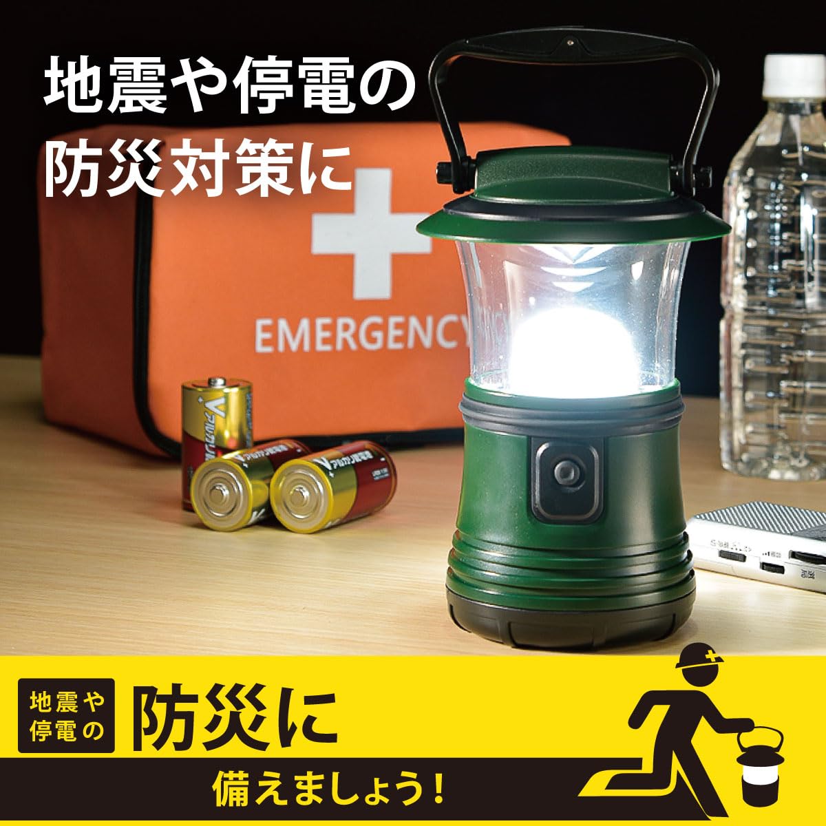 【 特 長 】 ◆昼光色、電球色に調色できます ◆昼光色、電球色それぞれ2段階(HIGH/LOW)に調光できます ◆明るさ約480ルーメン ※昼光色(HIGH)モード時 ◆防水保護等級はIPX4の防まつ形 ◆乾電池式(単1形乾電池×3本:別売) ◆地震や停電の防災対策に