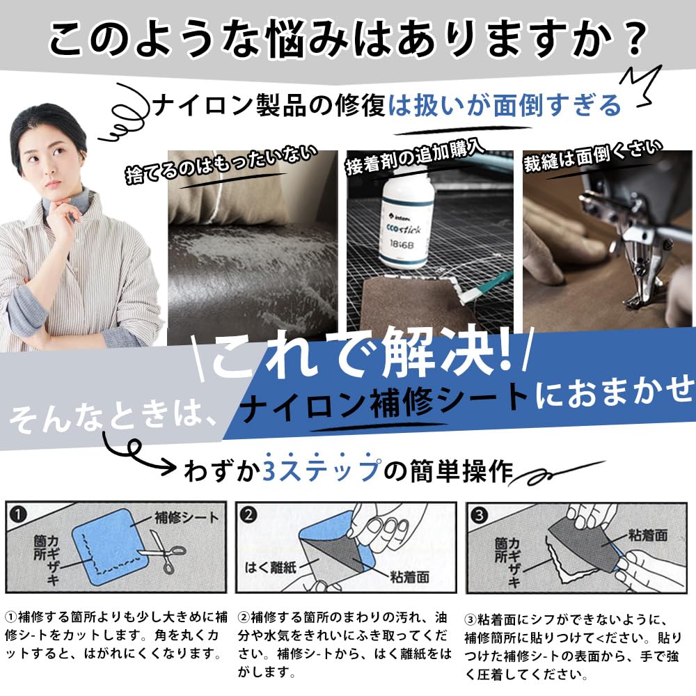 ナイロン補修シートは自転車のサドル、オートバイ、テント、傘、ダウンジャケット、バッグなどに使用でき、ダウンジャケットの傷、生地のひび割れを補修する. そのほか、手芸品、民芸品、工芸品などの仕事やDIYなどにも使用できます.