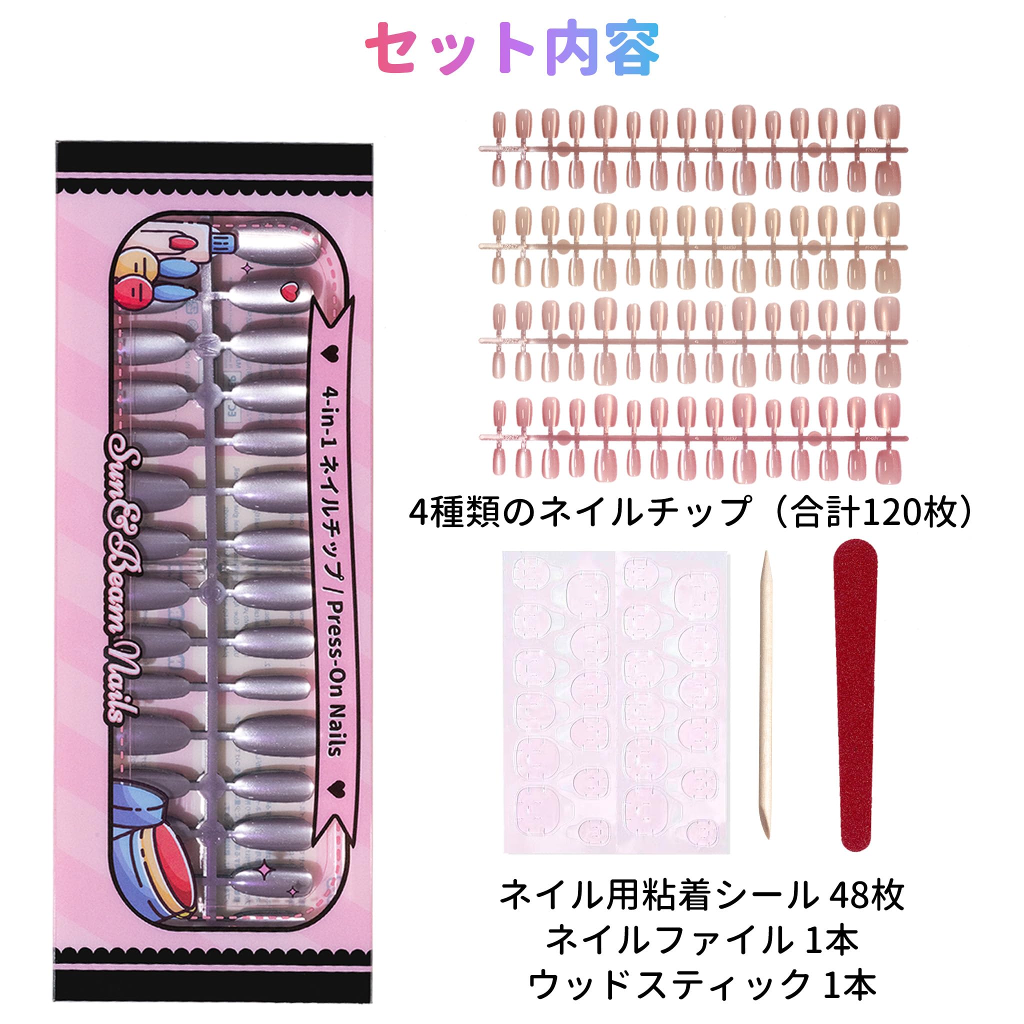 Sun&Beam Nails ネイルチップ 手作り風 4-in-1 120枚入り ショート バレリーナ 単色 マグネット つけ爪 付け爪 (M301)