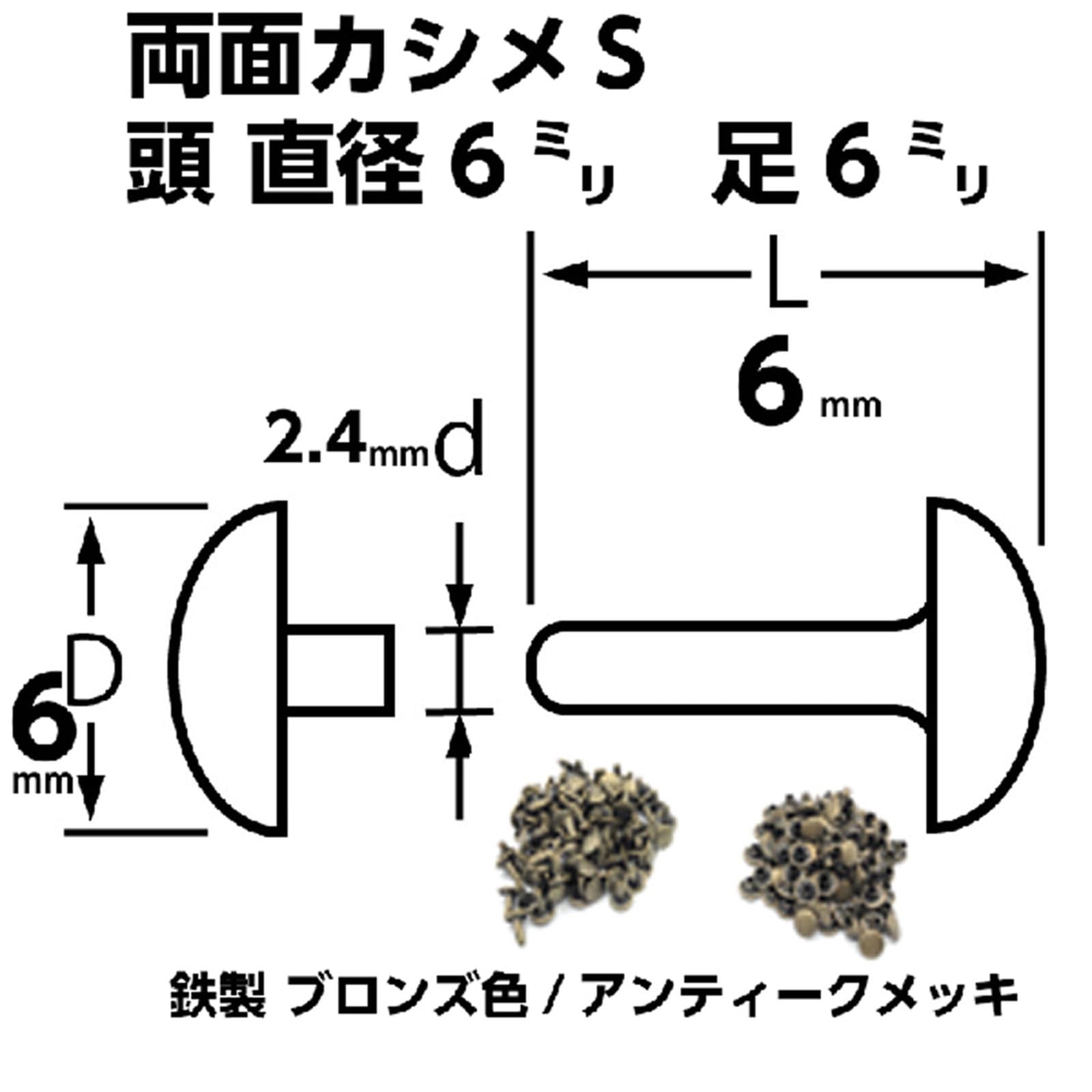 【新着特価】カシメ 両面カシメ 小 頭6mm 足 6mm アンティーク 100個 レザークラフト