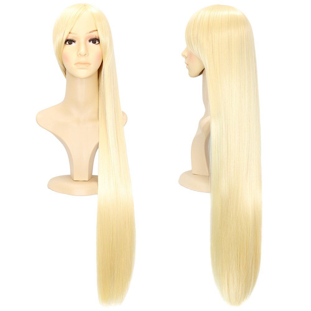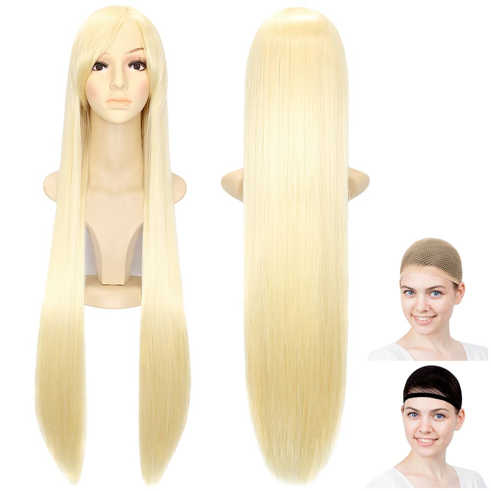 【数量限り】CaseEden スーパーロングストレート ウィッグ ウィッグネット 2個セット コスチューム用小物 ライトゴールド 100cm