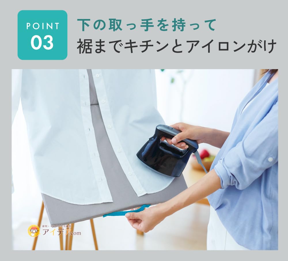 くるっと回して両面づかいok。ハンガーに掛けたままらくらくアイロンがけ。 スチームアイロン専用。 ファッションスタイリスト 橋本春奈 監修 アイロン台としても使える2WAY仕様。 適度なクッション性で使い心地◎下部持ち手付きで、裾までキチンと当てられる設計。 くるっと回して両面使えるからハンガーのかけ替え不要。折りたためてコンパクト。 裾にアイロン台としても。