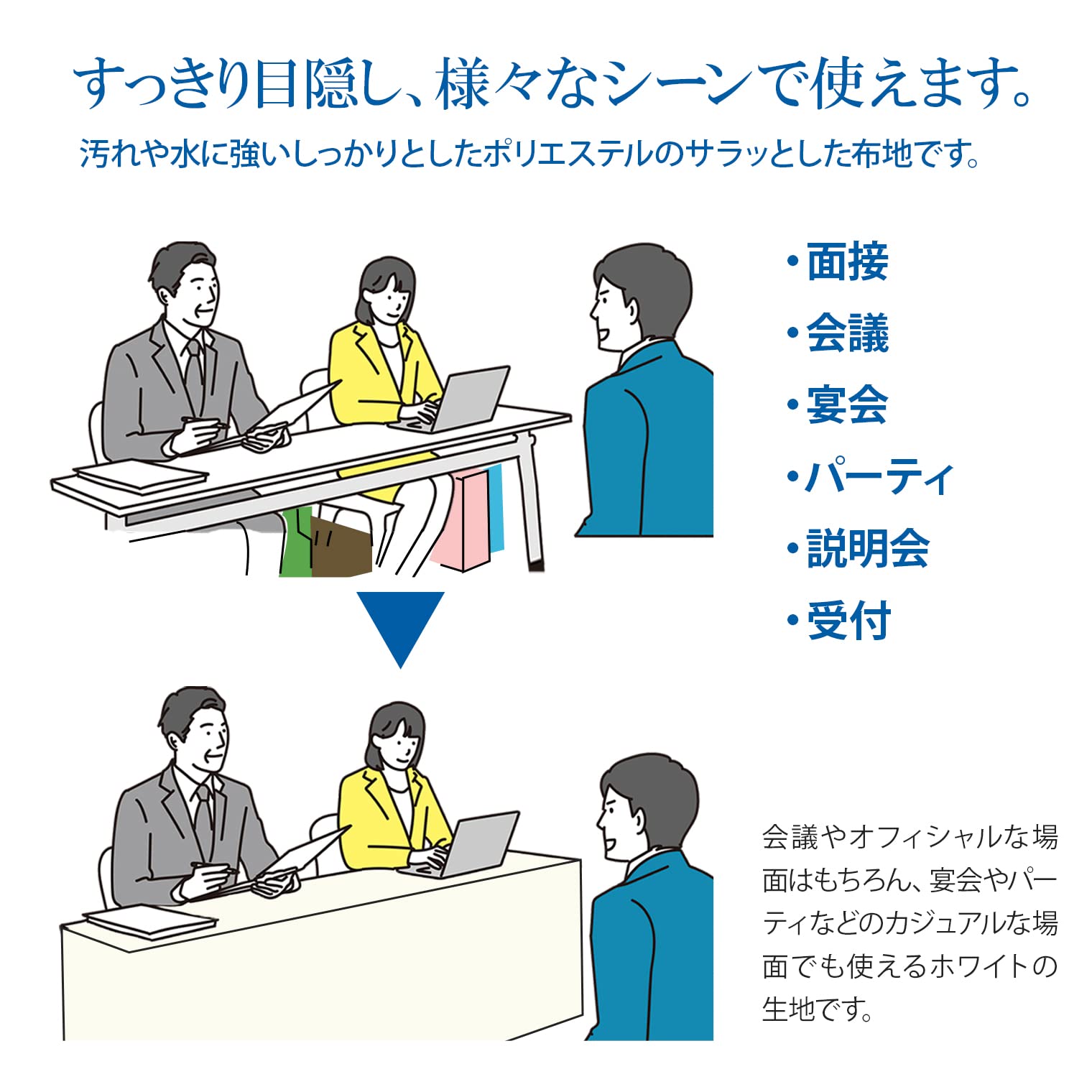 【様々な空間に】会議などのオフィシャルな場面ではもちろん、パーティや宴会などのカジュアルな場面でも使えるホワイト生地で、その場の雰囲気に合う場面を演出できます。