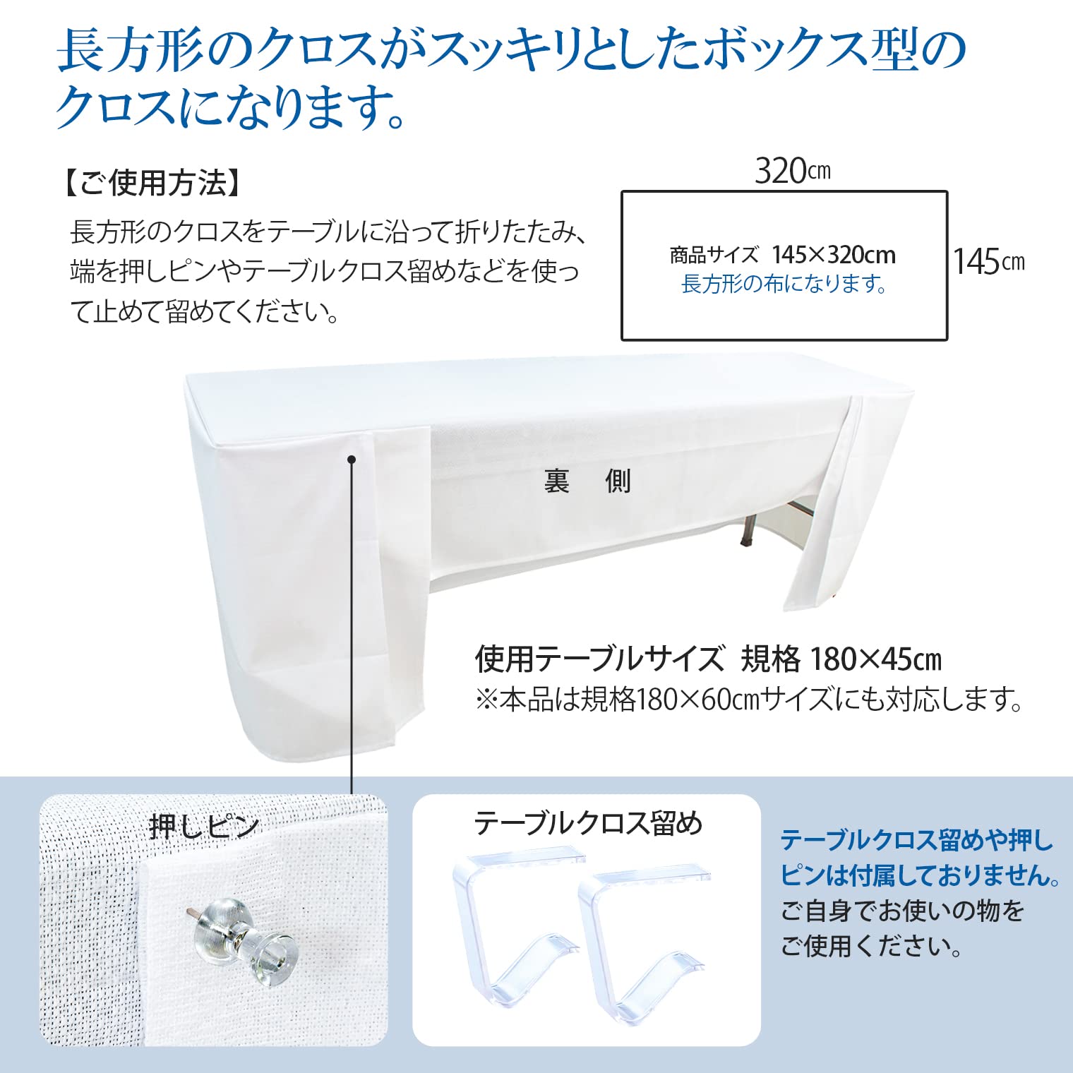 テーブルクロス 長机用 [2枚セット] (日本製 / 145×320cm / ボックス型用) 撥水加工 済み (ホワイト/無地) 会議テーブル (イベントや展示会にも) 白色 長方形