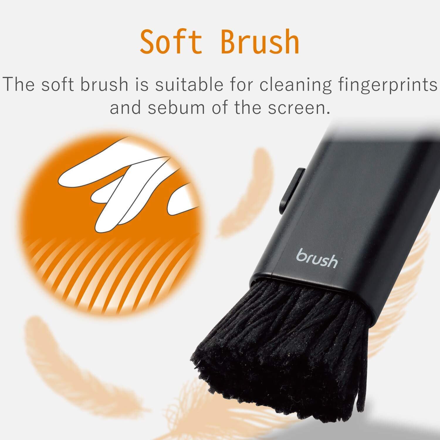 ■ 機器本体を傷つけにくい柔らかい毛とキーボードなどの細かな隙間のお掃除に便利な硬い毛が付いています。