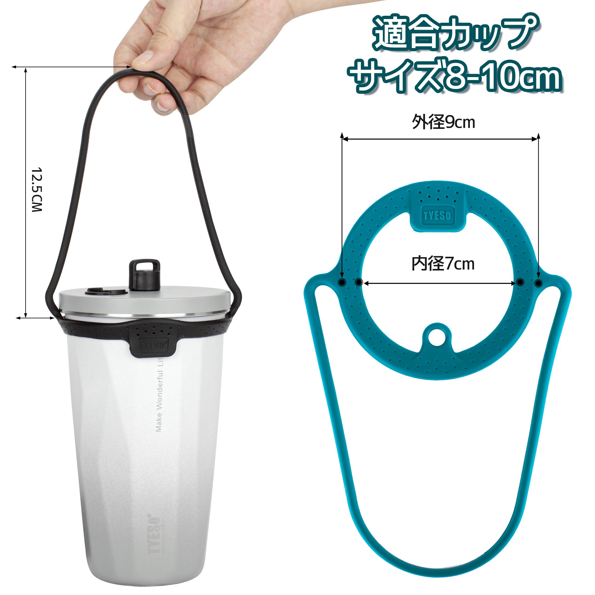 【特価処分】TYESOドリンク カップ ホルダーシリコン製ストロー キャリア ホルダー 手付き 持ち歩きタンブラー (青/白/黒)