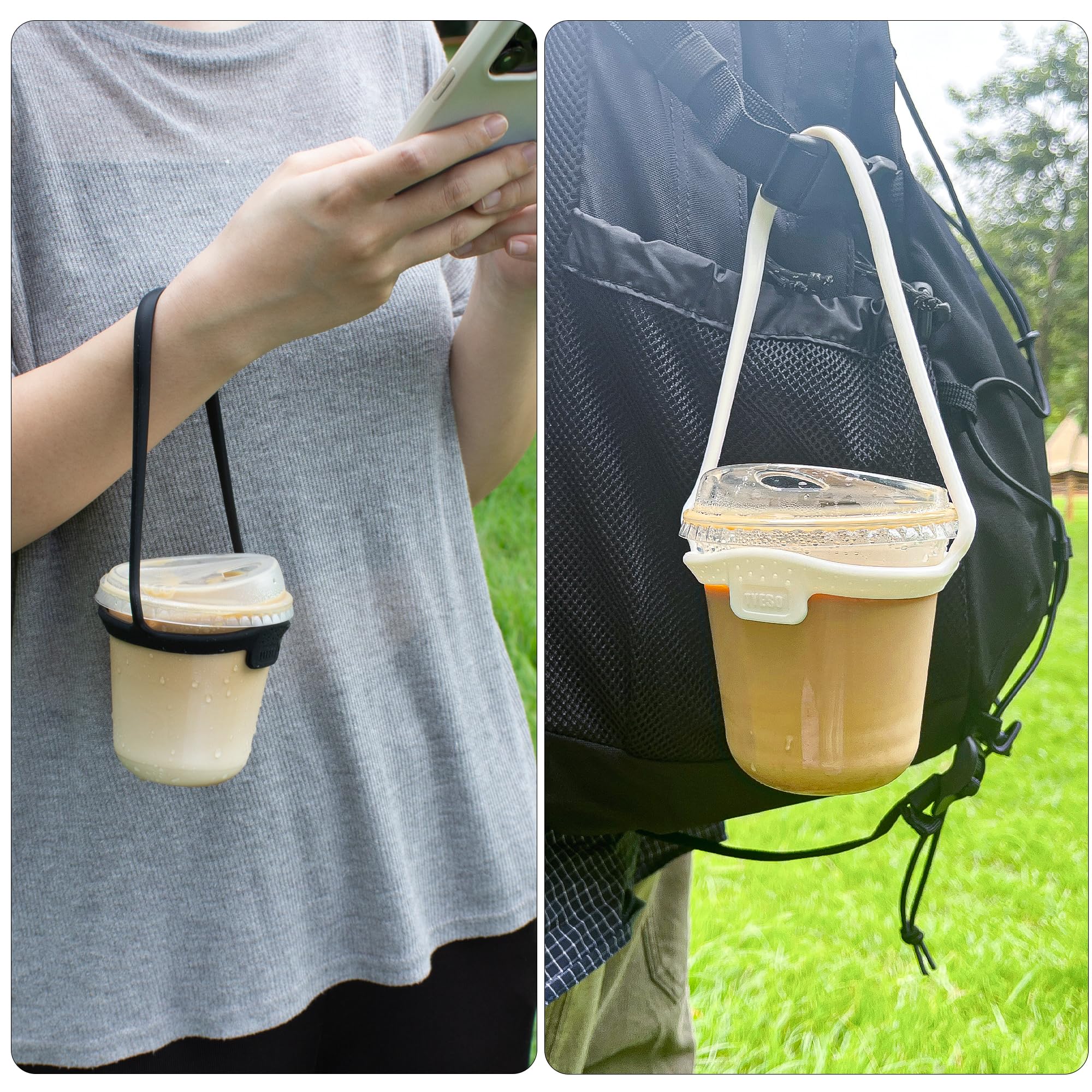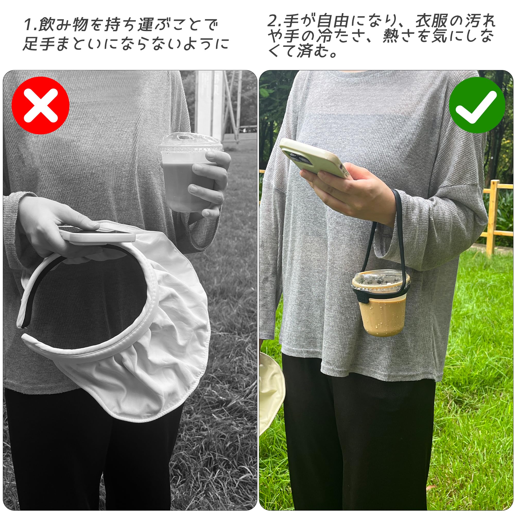 持ち運びを楽にする:カップホルダーは、カップ内の液体を防ぐために、倒れないようにぶら下がっカップのバランスを保つことができ、お湯は、ホットとコールドドリンクカップの様に適用され、やけどを防ぐために手で保持する必要はありません。