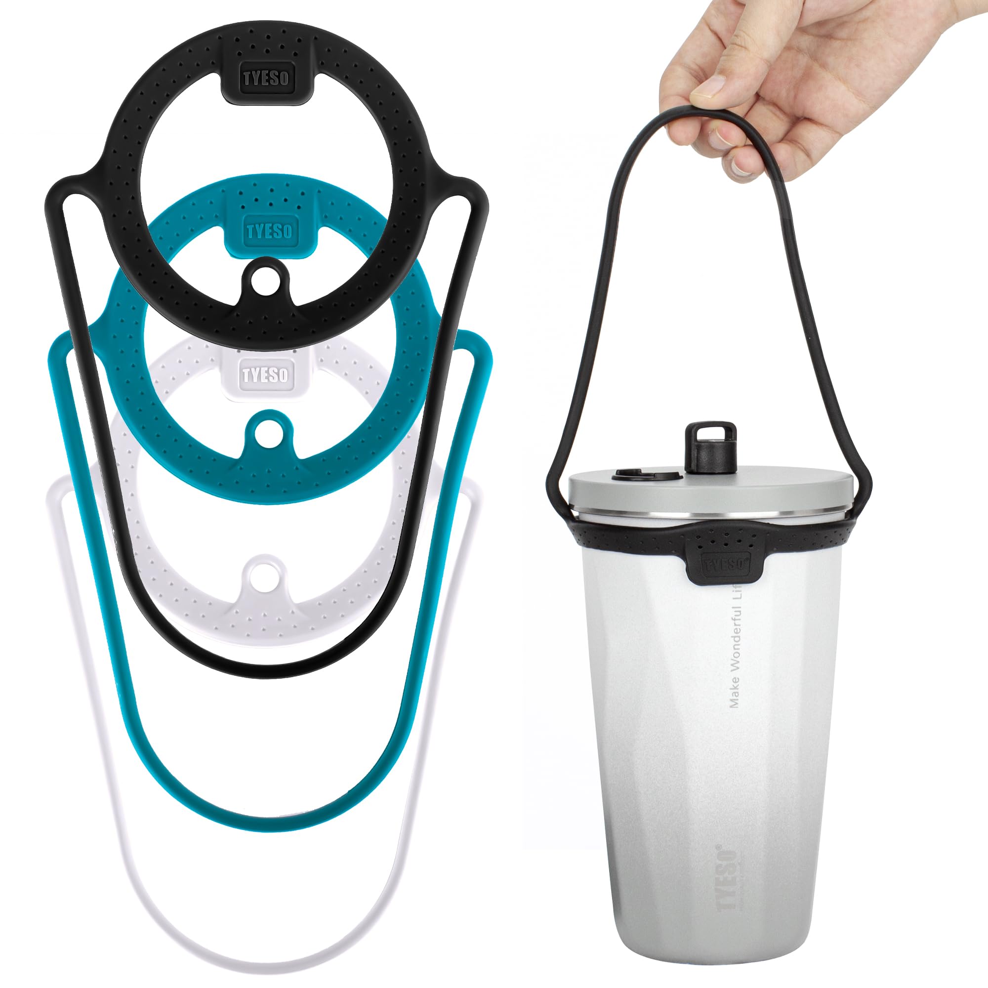 TYESOドリンク カップ ホルダーシリコン製ストロー キャリア ホルダー 手付き 持ち歩きタンブラー (青/白/黒)