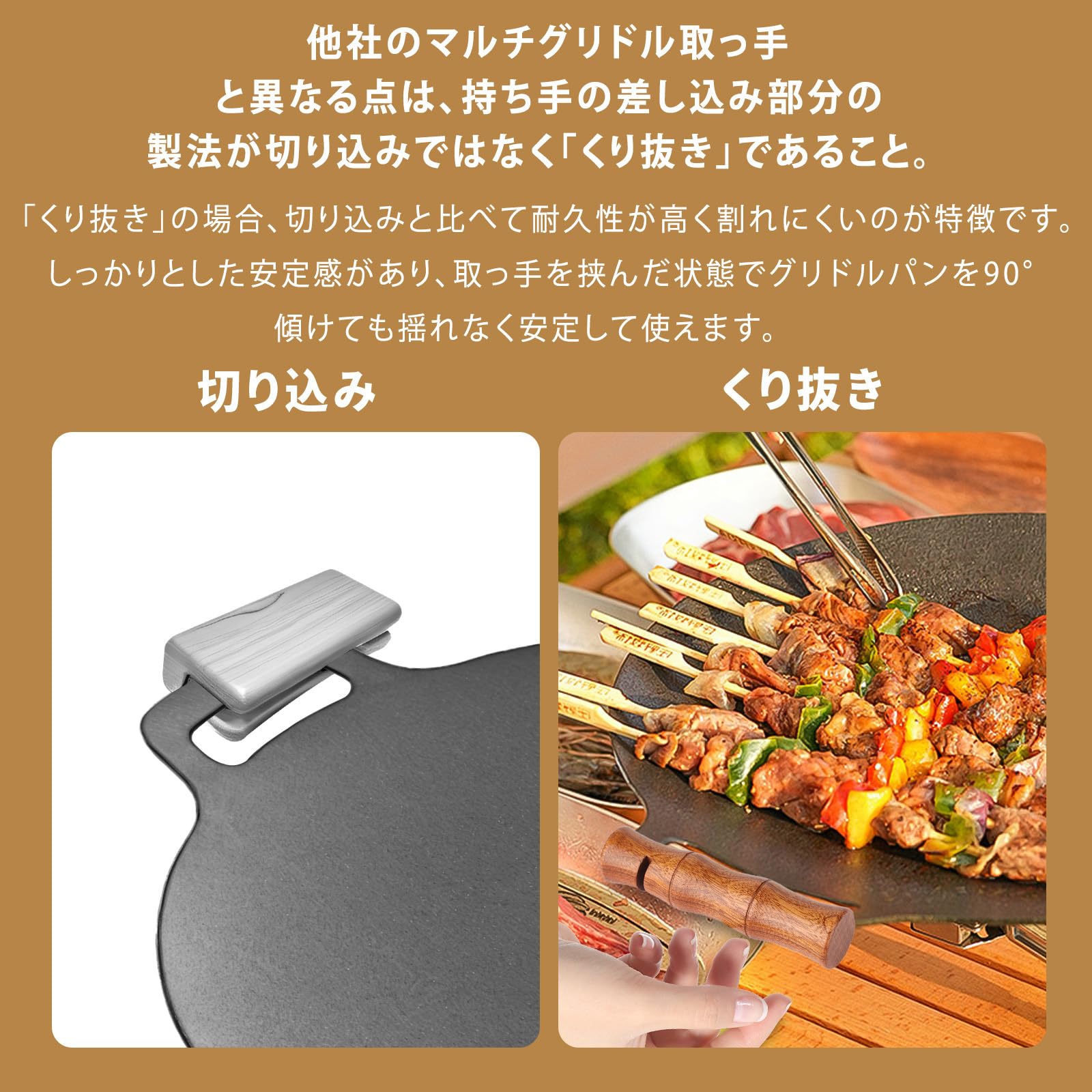 マルチグリドル 取っ手 グリップスタンド JHQ33対応 取っ手カバー マルチグリドル グリップ 鉄板取っ手 ウッドカバー バーベキュー 取っ手 キャンプ アウトドア 自宅 取付簡単 耐熱 火傷防止