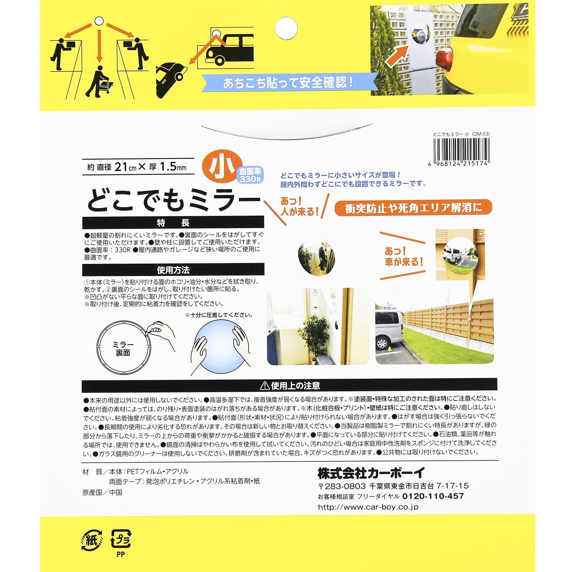 【新着特価】カーボーイ どこでもミラー 小 約直径210mm×厚み1.5mm