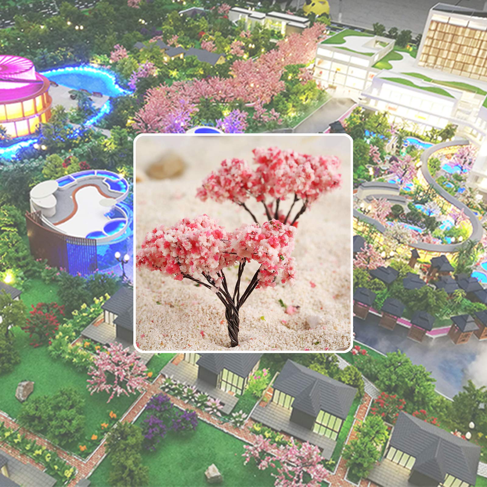 【実用性】モデルツリーは可愛いピンクで、ジオラマの風景の外観を向上できます。レイアウトが良くなります。そして、桜の木は模型や家などに美しい装飾です。