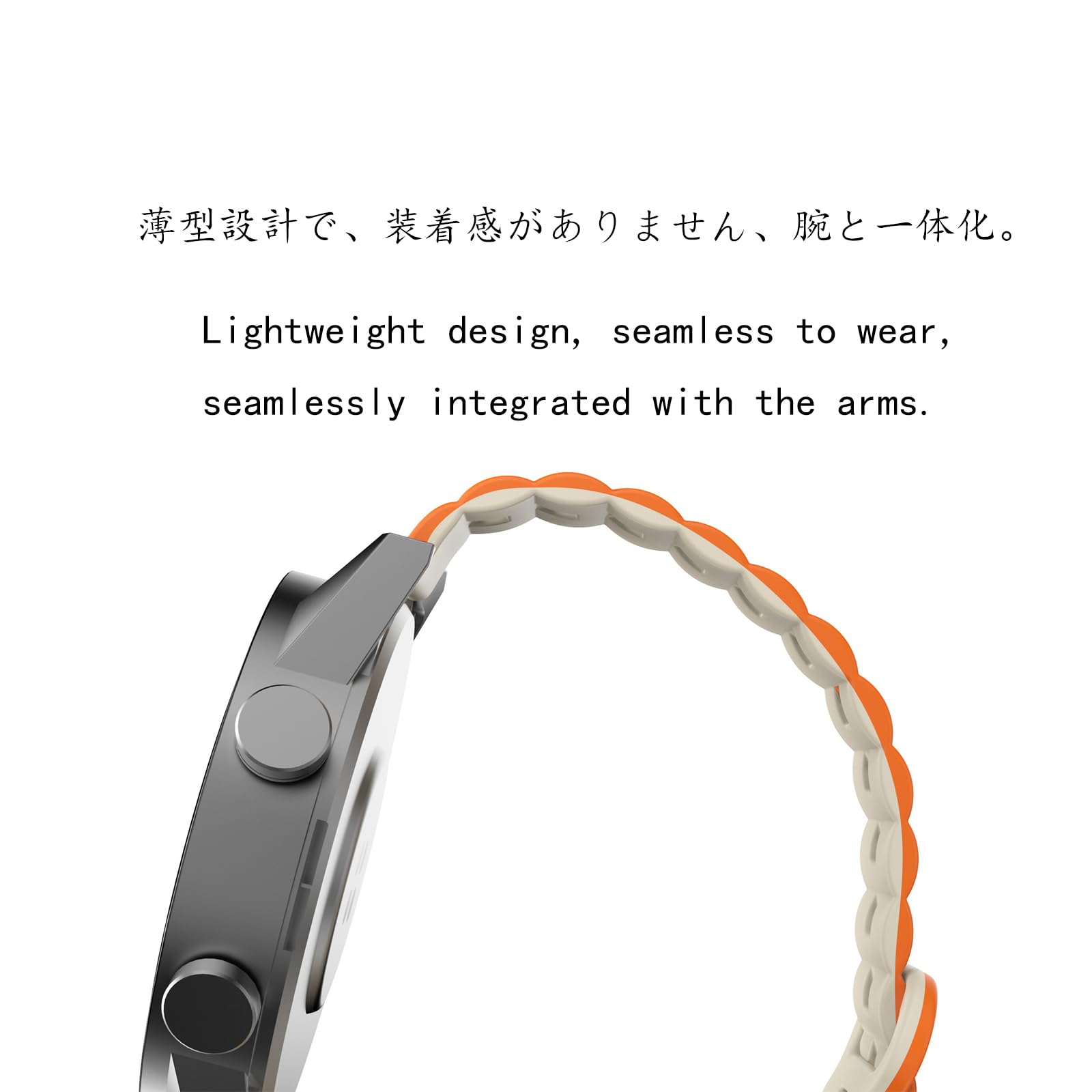 時計バンドは液状シリコンで作られ、柔らかく 快適 通気 防水 耐久性 特性を持ち、腕にぴったりフィットし、軽量設計で手首にストレスを与えません。